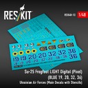 ResKit Models: Su-25 Frogfoot DARK Digital (Pixel) (BLUE 09, 15, 17, 21, 29, 30, 31, 37, 39, 46, 49) Ukrainian Air Forces (Main Decals with Stencils)(1/48) in 1:48 [4594800114]
