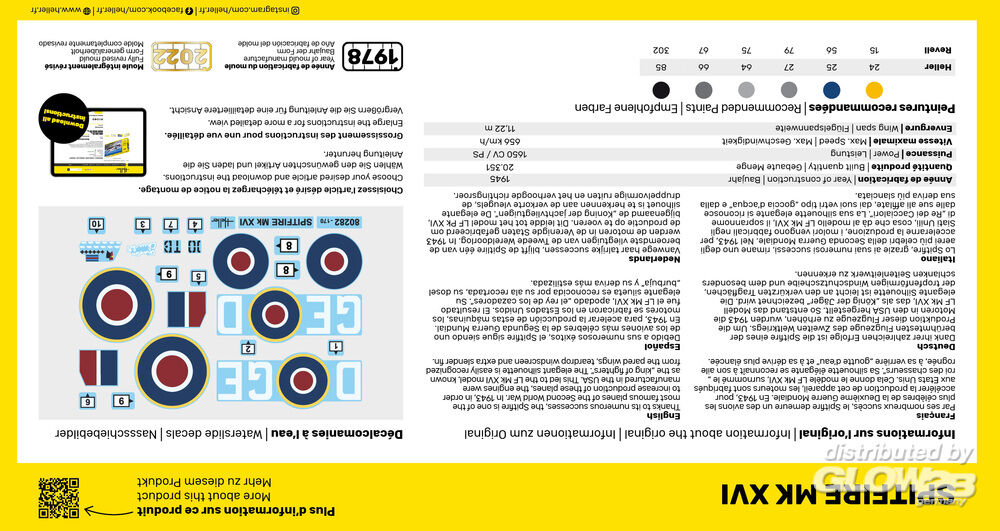 Dank ihrer zahlreichen Erfolge ist die Spitfire eines der berühmtesten Flugzeuge des Zweiten Weltkriegs. Um die Produktion dieser Flugzeuge zu erhöhen, wurden 1943 die Motoren in den USA hergestellt. So entstand das Modell LF Mk XVI, das als „König der Jäger“ bezeichnet wird. Die elegante Silhouette ist leicht an den verkürzten Tragflächen, der tropfenförmigen Windschutzscheibe und dem besonders schlanken Seitenleitwerk zu erkennen. Zusatzinformationen