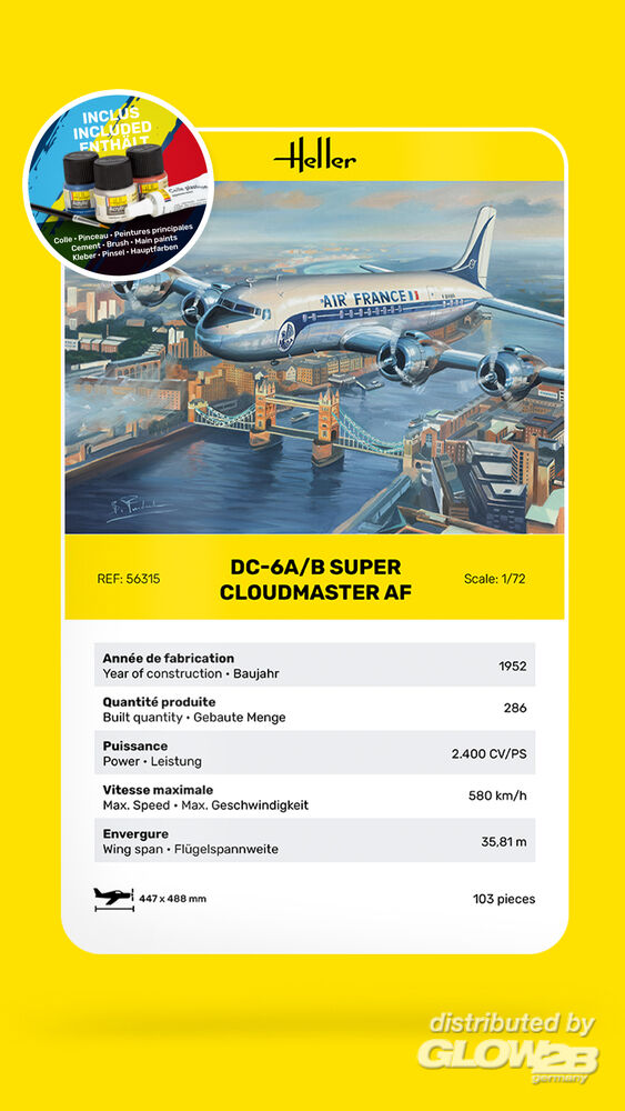 Heller: STARTER KIT DC6 Super Cloudmaster AF in 1:72 [1000563150]