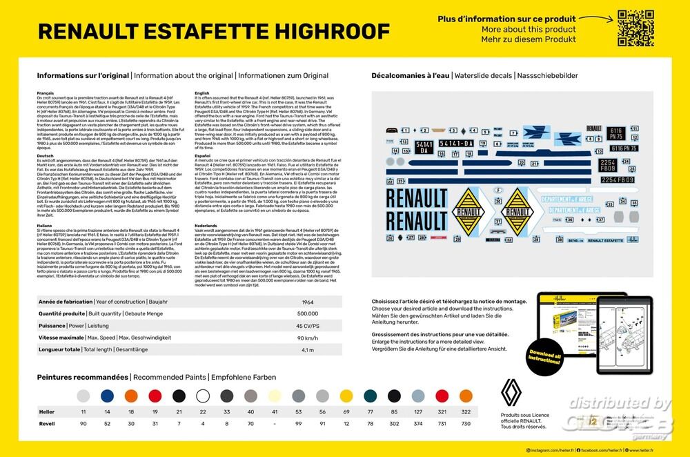 Es wird oft angenommen, dass der Renault 4 (Ref. Heller 80759), der 1961 auf den Markt kam, das erste Auto mit Vorderradantrieb von Renault war. Dies ist nicht der Fall. Es war das Nutzfahrzeug Renault Estafette aus dem Jahr 1959.