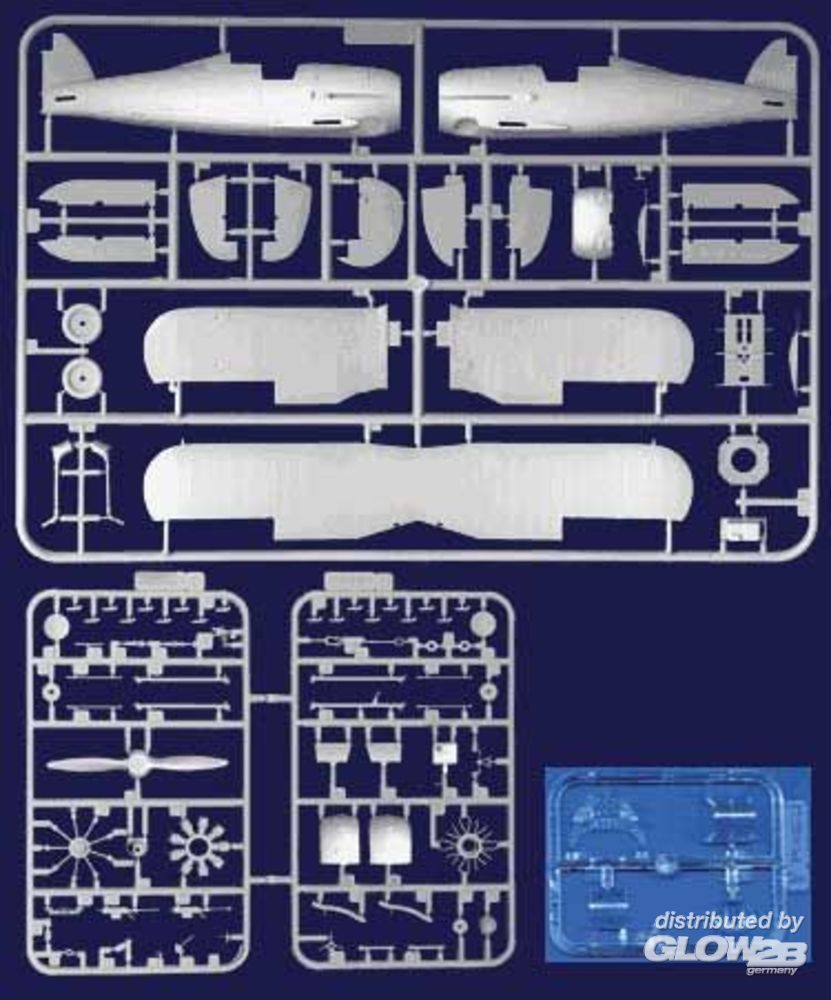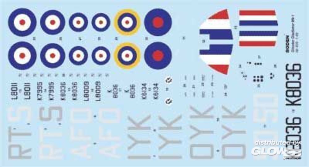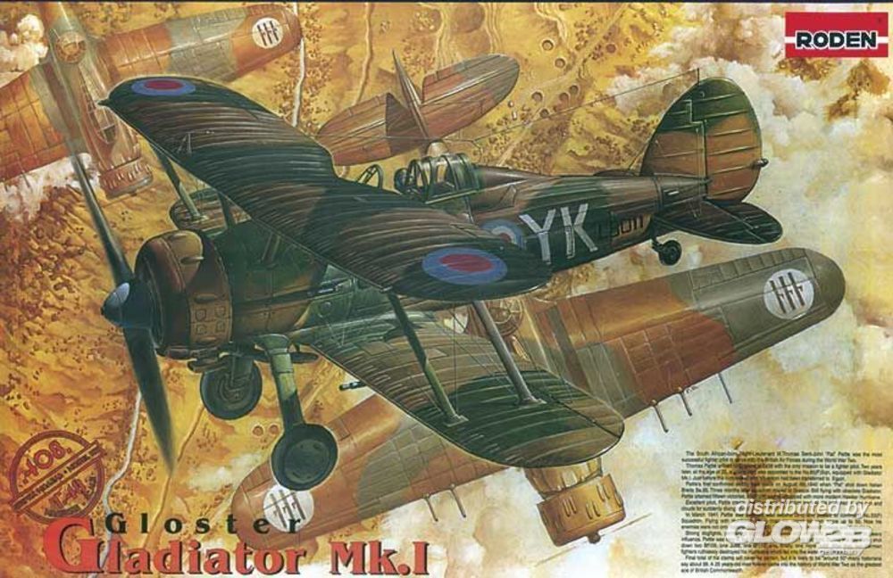 Mit detailliertem Motor und Cockpit, Instrumentenbrett als Klarsichtteil, fein strukturierte Oberflächendetails wie Stoffbespannung, leicht erhabene Blechpanele, versenkte Gravuren. Zeichnung für die Verspannung, Decals für 5 Markierungen: K 8036, No. 33 Sqdn. RAF, Sgt. Bill Vale, Palestina 1939, L 8009, No. 80 Sqdn. RAF, Flg. Off. Peter Wykeham-Barnes, Sidi Barrani, Ägypten, August 1940, K7995, No. 607 "County of Durham" Sqdn. RAF, Flt. Lt. John Sample, Acklington, Okt. 1939, K6134, No. 112 Sqn. RAF, K Flight, Flt. Lt. J.Scoular, Sudan 1940, L 8011, No. 80 Sqn. RAF, Flt. Lt. M.T. St. John "Pat" Pattle, Amriya, Ägypten, 1940.