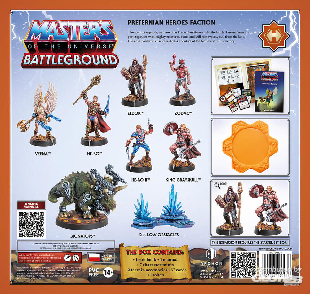 1 x Regelbuch 1 x Handbuch 7 x Charakter-Miniaturen 2 x Geländezubehör 37 x Karten 1 x Marker Zusatzinformationen