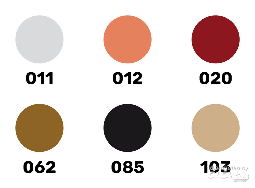 Acrylfarbe 011 Silber metallisch Acrylfarbe 012 Kupfer metallisch Acrylfarbe 020 Bordeuxrot glänzend Acrylfarbe 062 Leder matt Acrylfarbe 085 Kohlenschwarz seidenmatt Acrylfarbe 103 Creme matt Enthält 2-methyl-2H-isothiazol-3-one. Kann allergische Reaktionen hervorrufen. Ist ärztlicher Rat erforderlich. Verpackung oder Kennzeichnungsetikett bereithalten. Darf nicht in die Hände von Kindern gelangen. UFI : RG7M-4VWC-TR0E-2XJH Zusatzinformationen
