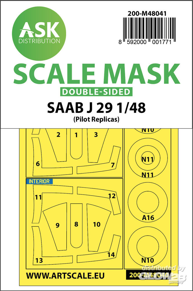 Art Scale Kit: SAAB J29 B double-sided painting mask for Pilot Replicas in 1:48 [2000001771]