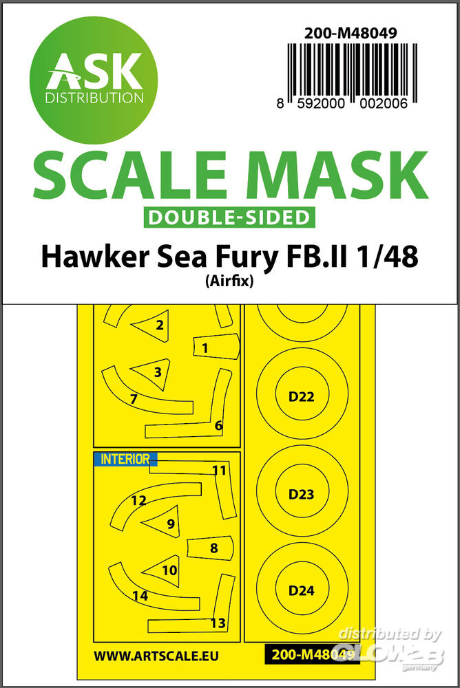 Art Scale Kit: Hawker Sea Fury FB.11 double-sided mask for Airfix in 1:48 [2000002006]