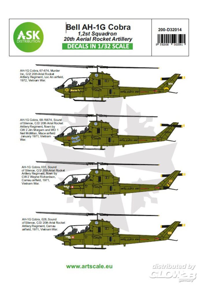 Art Scale Kit: Bell AH-1G Cobra 20th Aerial Rocket artilery part 1 in 1:32 [2000003591]