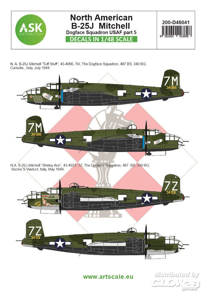 Art Scale Kit: B-25J Mitchell part 5 - US Dogface Squadron, Shirley Ann & Tuff Stuff, Mediterranean area in 1:48 [2000003898]