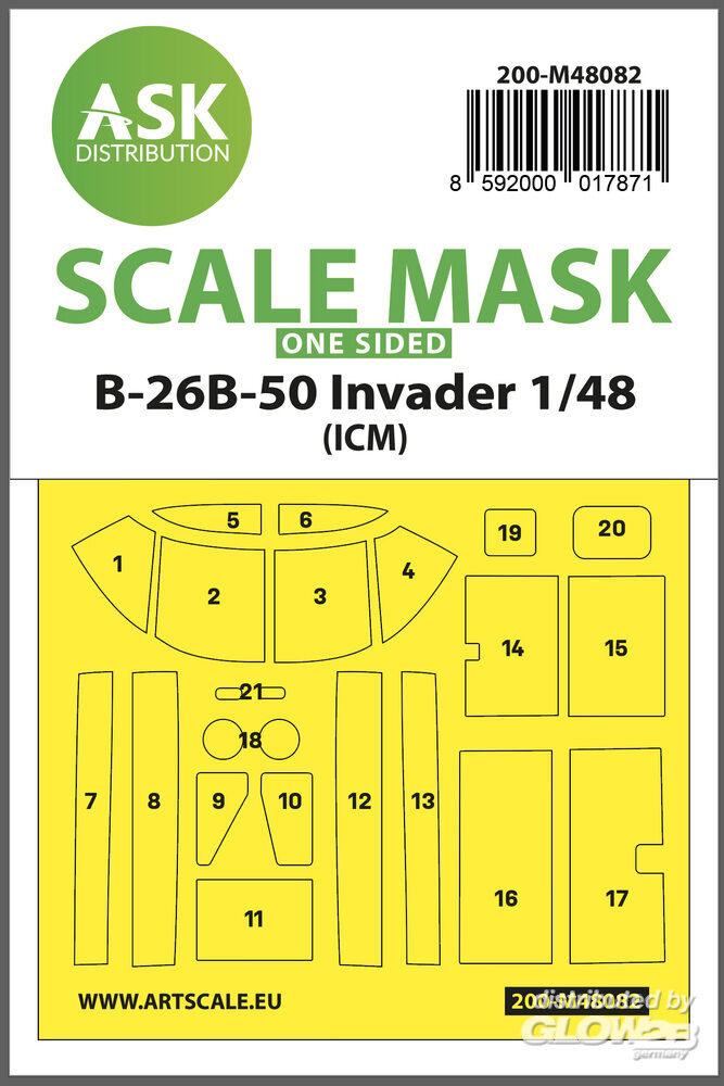 Art Scale Kit: B-26B-50 Invader one-sided mask self-adhesive pre-cutted for ICM in 1:48 [2000017871]