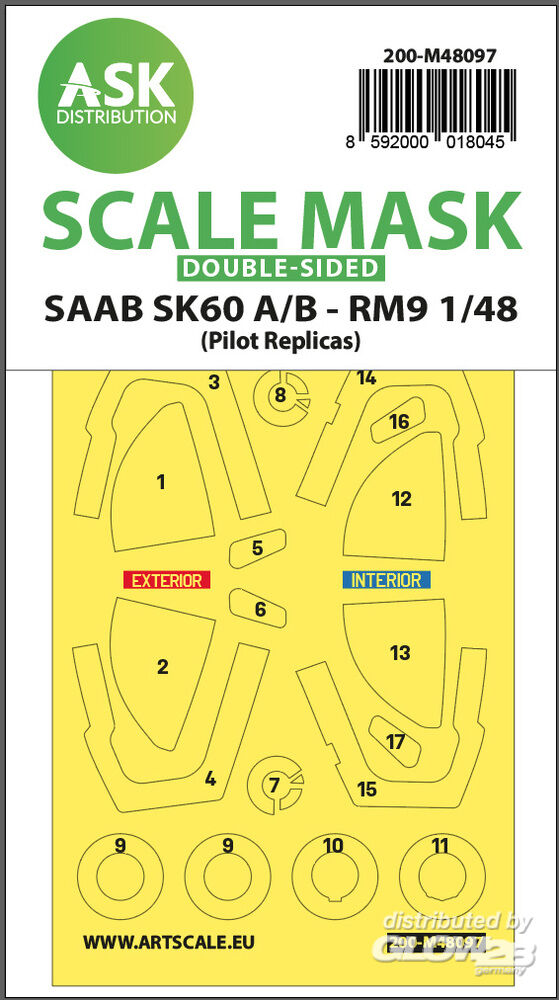 Art Scale Kit: SAAB SK60 double-sided mask self-adhesive, pre-cutted for Pilot Replicas in 1:48 [2000018045]