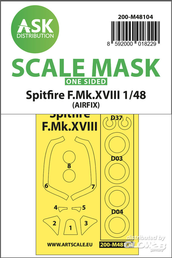 Art Scale Kit: Spitfire F.Mk.XVIII one-sided mask self-adhesive, pre-cutted for Airfix in 1:48 [2000018229]