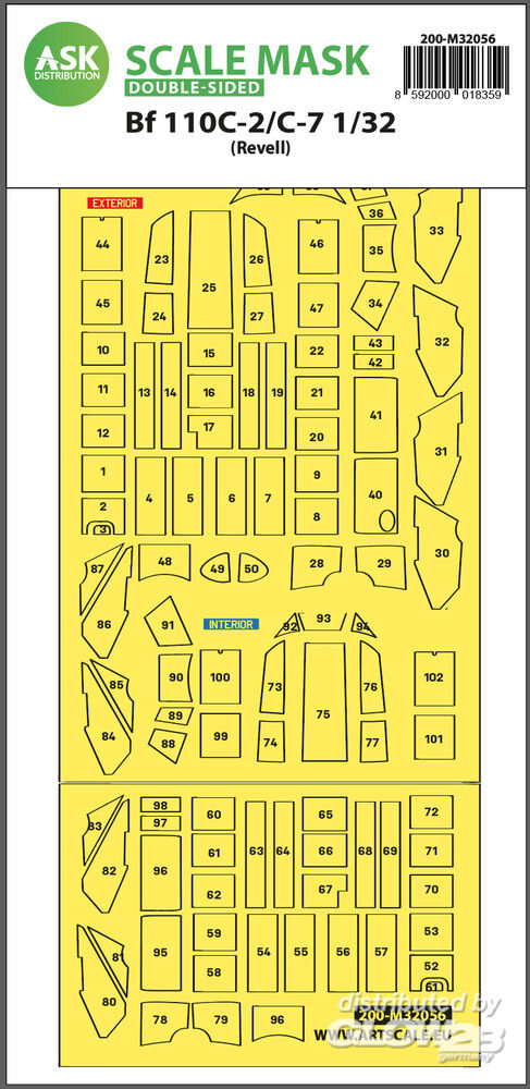 Art Scale Kit: Messerschmitt Bf 110C-2/C-7 double-sided express masks for Revell in 1:32 [2000018359]