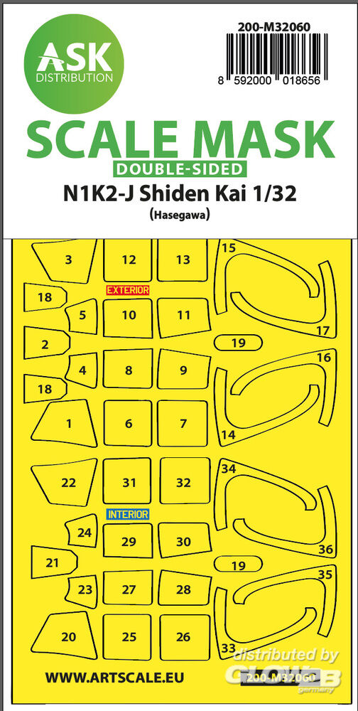 Art Scale Kit: N1K2-J Shiden Kai double-sided express painting mask for Hasegawa in 1:32 [2000018656]