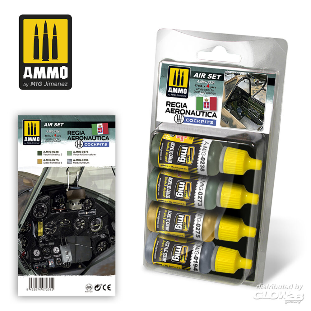 1 x ACRYLIC COLOR Verde Anticorrosione (A.MIG-0273) 1 x ACRYLIC COLOR Giallo Mimetico 4 (A.MIG-0272) 1 x METALLIC Matt Aluminium (A.MIG-0194) Zusatzinformationen