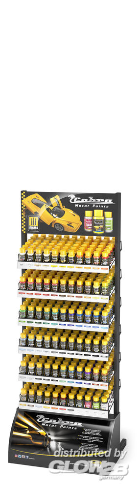 6 x Cobra Motor Off White (A.MIG-0301 / Glow2B 2074003014) 6 x Cobra Motor Beige Leather (A.MIG-0302 / Glow2B 2074003021) 6 x Cobra Motor Pale Yellow (A.MIG-0303 / Glow2B 2074003038) 6 x Cobra Motor Racing Yellow (A.MIG-0304 / Glow2B 2074003045) 6 x Cobra Motor Giallio Modena (A.MIG-0305 / Glow2B 2074003052) 6 x Cobra Motor RB Yellow (A.MIG-0306 / Glow2B 2074003069) 6 x Cobra Motor Repsol Orange (A.MIG-0307 / Glow2B 2074003076) 6 x Cobra Motor Gulf Orange (A.MIG-0308 / Glow2B 2074003083) 6 x Cobra Motor Jagermeister Orange (A.MIG-0309 / Glow2B 2074003090) 6 x Cobra Motor Repsol Red (A.MIG-0310 / Glow2B 2074003106) 6 x Cobra Motor MP4 Red (A.MIG-0311 / Glow2B 2074003113) 6 x Cobra Motor 50´s 60´s Rosso Corsa (A.MIG-0312 / Glow2B 2074003120) 6 x Cobra Motor Rosso Corsa Racing (A.MIG-0313 / Glow2B 2074003137) 6 x Cobra Motor Phoenix red (A.MIG-0314 / Glow2B 2074003144) 6 x Cobra Motor Red Wine (A.MIG-0315 / Glow2B 2074003151) 6 x Cobra Motor Exhaust pipes (A.MIG-0316 / Glow2B 2074003168) 6 x Cobra Motor Wood (A.MIG-0317 / Glow2B 2074003175) 6 x Cobra Motor Reddish Leather (A.MIG-0318 / Glow2B 2074003182) 6 x Cobra Motor Brown Leather (A.MIG-0319 / Glow2B 2074003199) 6 x Cobra Motor Saturn Green (A.MIG-0320 / Glow2B 2074003205) 6 x Cobra Motor Oriental green (A.MIG-0321 / Glow2B 2074003212) 6 x Cobra Motor Spinel Green (A.MIG-0322 / Glow2B 2074003229) 6 x Cobra Motor British Racing Green (A.MIG-0323 / Glow2B 2074003236) 6 x Cobra Motor British Racing Dark Green (A.MIG-0324 / Glow2B 2074003243) 6 x Cobra Motor Phtalo green (A.MIG-0325 / Glow2B 2074003250) 6 x Cobra Motor Vailliant Green (A.MIG-0326 / Glow2B 2074003267) 6 x Cobra Motor Blue Rob Walker (A.MIG-0327 / Glow2B 2074003274) 6 x Cobra Motor San Marino Blue (A.MIG-0328 / Glow2B 2074003281) 6 x Cobra Motor Tyrrell Blue (A.MIG-0329 / Glow2B 2074003298) 6 x Cobra Motor Blue Canvas (A.MIG-0330 / Glow2B 2074003304) 6 x Cobra Motor Williams Blue (A.MIG-0331 / Glow2B 2074003311) 6 x Cobra Motor Medium Blue (A.MIG-0332 / Glow2B 2074003328) 6 x Cobra Motor Performance Blue (A.MIG-0333 / Glow2B 2074003335) 6 x Cobra Motor Gulf Blue (A.MIG-0334 / Glow2B 2074003342) 6 x Cobra Motor Frost Grey (A.MIG-0335 / Glow2B 2074003359) 6 x Cobra Motor Ocean Grey (A.MIG-0336 / Glow2B 2074003366) 6 x Cobra Motor Graphite Grey (A.MIG-0337 / Glow2B 2074003373) 6 x Cobra Motor Rubber (A.MIG-0338 / Glow2B 2074003380) 6 x Cobra Motor Carbon Fibre (A.MIG-0339 / Glow2B 2074003397) 6 x Cobra Motor Matt Black (A.MIG-0340 / Glow2B 2074003403) 6 x Cobra Motor Satin Black (A.MIG-0341 / Glow2B 2074003410) 6 x Cobra Motor Black Gloss Primer (A.MIG-0342 / Glow2B 2074003427) 6 x Cobra Motor Chrome Effect for Black Gloss (A.MIG-0343 / Glow2B 2074003434) 6 x Cobra Motor Grigio Thalasse (A.MIG-0344 / Glow2B 2074003441) 6 x Cobra Motor Alcoa Alluminium (A.MIG-0345 / Glow2B 2074003458) 6 x Cobra Motor Mineral Grau (A.MIG-0346 / Glow2B 2074003465) 6 x Cobra Motor Selenit Grau (A.MIG-0347 / Glow2B 2074003472) 6 x Cobra Motor Basalt Black (A.MIG-0348 / Glow2B 2074003489) 6 x Cobra Motor Metallic Tourquoise (A.MIG-0349 / Glow2B 2074003496) 6 x Cobra Motor Guardsman Blue (A.MIG-0350 / Glow2B 2074003502) 6 x Cobra Motor RB Pearl Blue (A.MIG-0351 / Glow2B 2074003519) 6 x Cobra Motor Racing Purple (A.MIG-0352 / Glow2B 2074003526) 6 x Cobra Motor Rosso Metallizzato (A.MIG-0353 / Glow2B 2074003533) 6 x Cobra Motor Classic Copper (A.MIG-0354 / Glow2B 2074003540) 6 x Cobra Motor BBS GOLD (A.MIG-0355 / Glow2B 2074003557) 6 x Cobra Motor Copper Brown Metallic (A.MIG-0356 / Glow2B 2074003564) 6 x Cobra Motor Crystal glass (A.MIG-0357 / Glow2B 2074003571) 6 x Cobra Motor Yellow transparent (A.MIG-0358 / Glow2B 2074003588) 6 x Cobra Motor Orange transparent (A.MIG-0359 / Glow2B 2074003595) 6 x Cobra Motor Red Transparent (A.MIG-0360 / Glow2B 2074003601) 6 x Cobra Motor Smoke transparent (A.MIG-0361 / Glow2B 2074003618) 6 x Cobra Motor Acrylic Thinner (A.MIG-2260 / Glow2B 2074022602) 6 x Cobra Motor Clear Lacquer 2K (A.MIG-2261 / Glow2B 2074022619) 6 x Cobra Motor Hardener (A.MIG-2262 / Glow2B 2074022626) 6 x Cobra Motor Cleaner & Thinner Lacquer (A.MIG-2263 / Glow2B 2074022633) Zusatzinformationen
