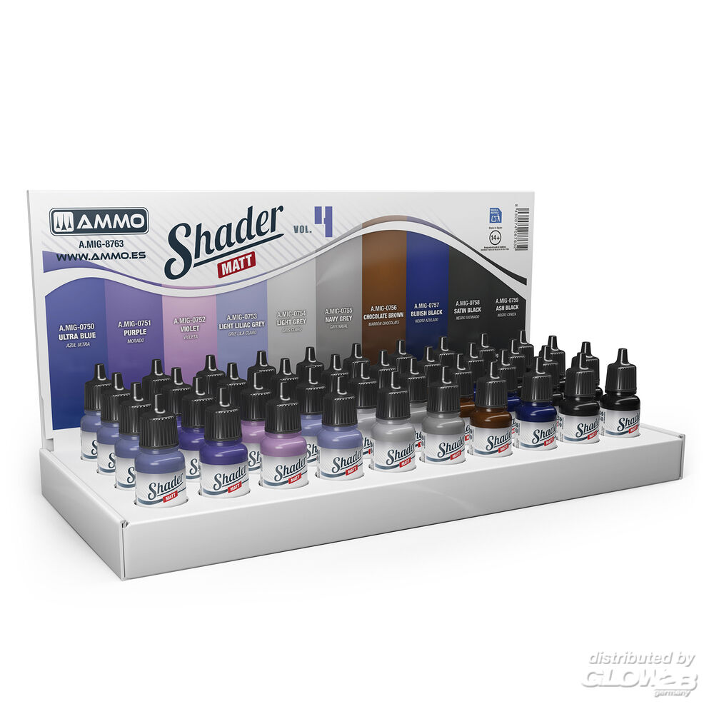 AMMO by MIG Jimenez: Shader Matt Vol.4 Display (10 kind of 17 ml Shaders Matt x 4 pcs. each) [2074087632]