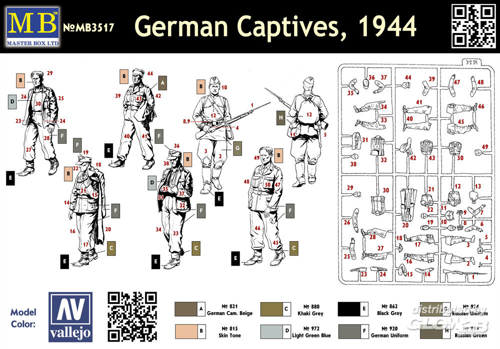 6 Figuren, in unterschiedlichen Haltungen baubar. Deutsche Kriegsgefangene und ein sowjetischer Wachsoldat. Farbige Ansichten auf der Schachtel dienen als Bemalungsanleitung. Der Bausatz wurde auf der Internationalen Spielwarenmesse in Nürnberg mit der Auszeichnung "Modell des Jahres 2006" prämiert!