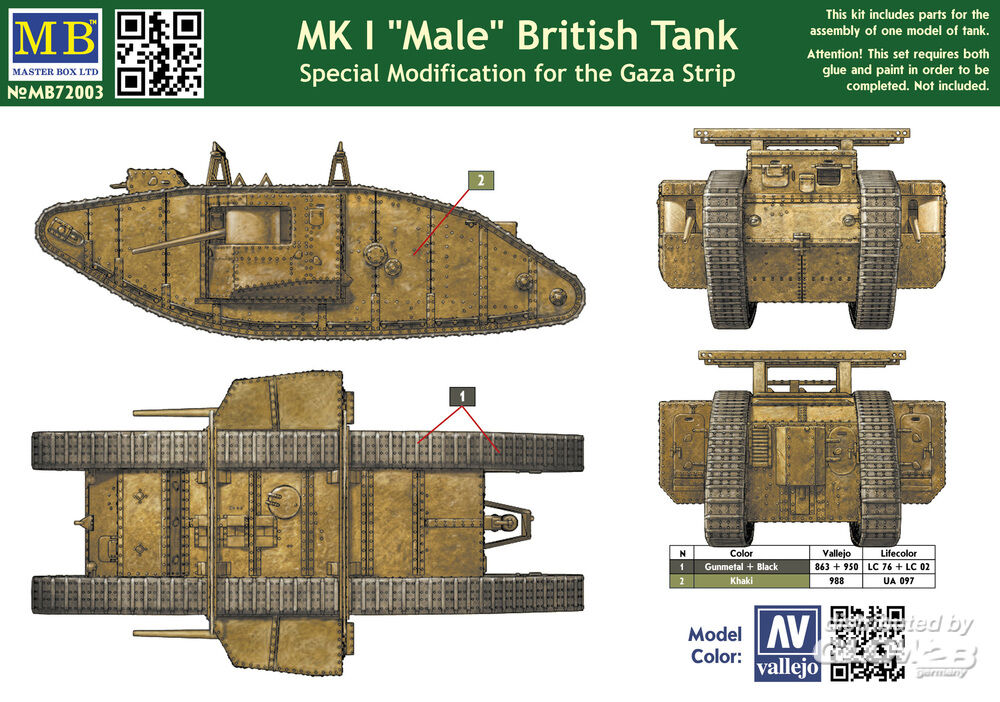 Master Box Ltd.: MK I Male British tank,Special modificat in 1:72 [2337003]