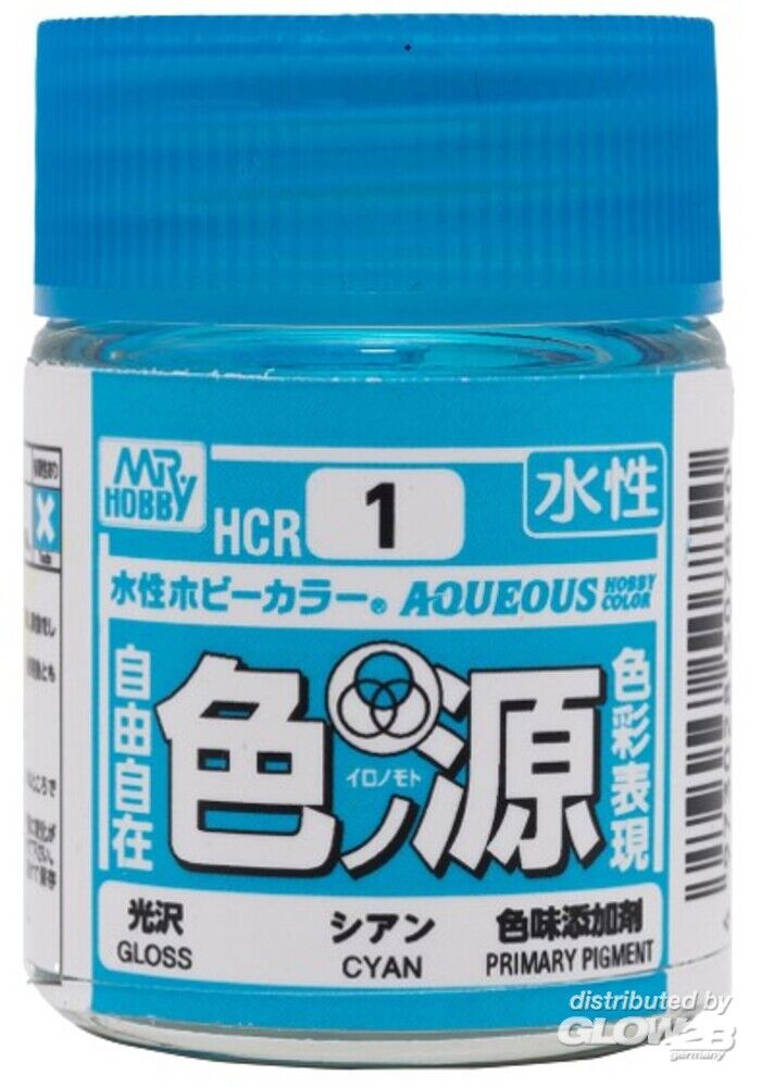 Mr Hobby - Gunze: Mr Hobby -Gunze Aqueous Hobby Colors (18 ml) Primary Color Pigment Cyan [3028508741]