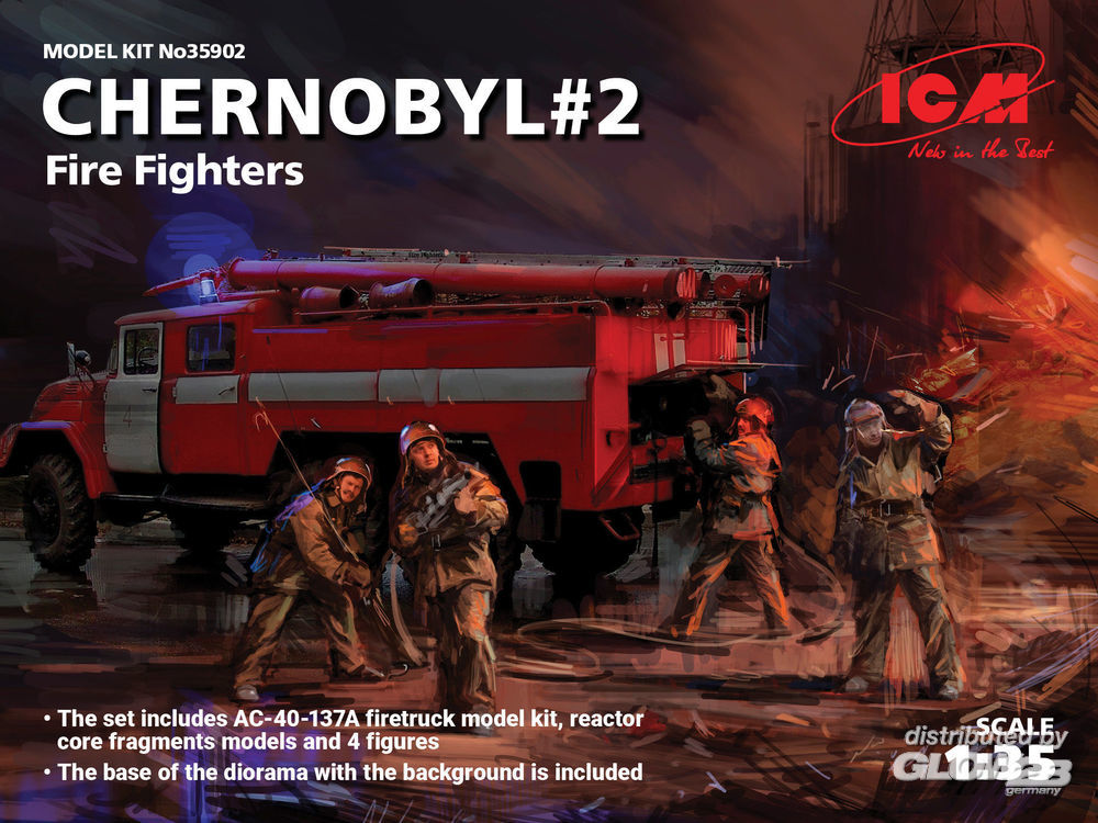 ICM: Chernobyl2. Fire Fighters(AC-40-137A firetruck&4figur&diora base w.backgrou in 1:35 [3315902]