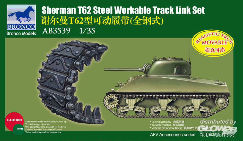 Bronco Models: Shermann T62 Workable Track Link Set in 1:35 [3433539]