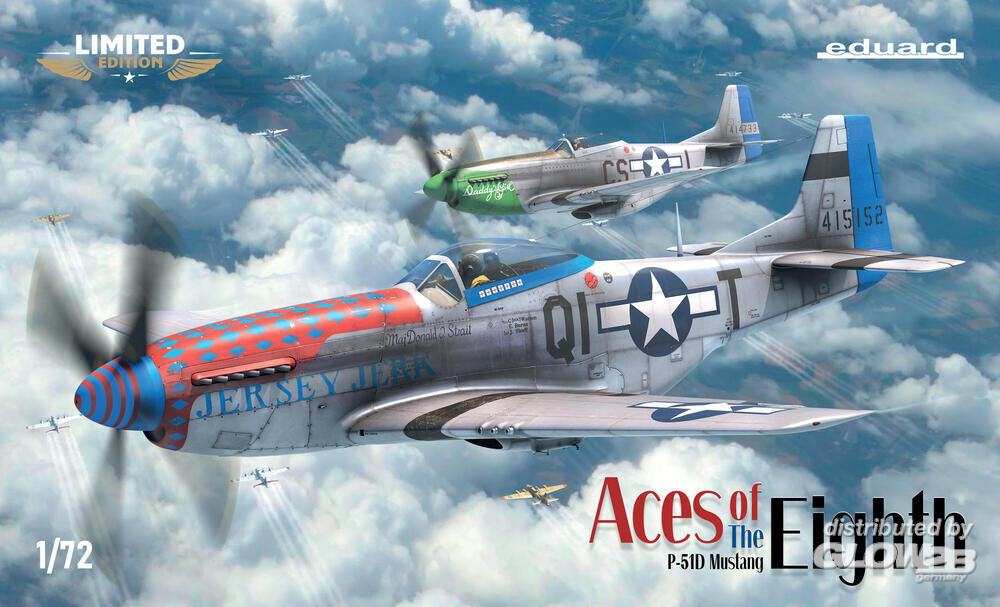 Limitierter Bausatz des WWII US-Jagdflugzeugs P-51D im Maßstab 1/72. Alle Markierungen sind von den Einheiten der 8th Air Force. Der Plastikbausatz enthält Teile für zwei Modelle im Maßstab - Plastikteile: Eduard- Markierungsmöglichkeiten: 12- Abziehbilder: Eduard- PE-Teile: ja, vorlackiert- Lackiermaske:ja- Resinteile: nein