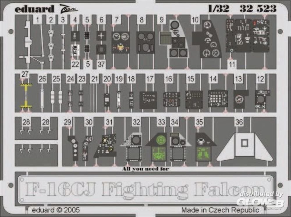 Eduard Accessories: F-16CJ Interior für Tamiya Bausatz in 1:32 [3932523]