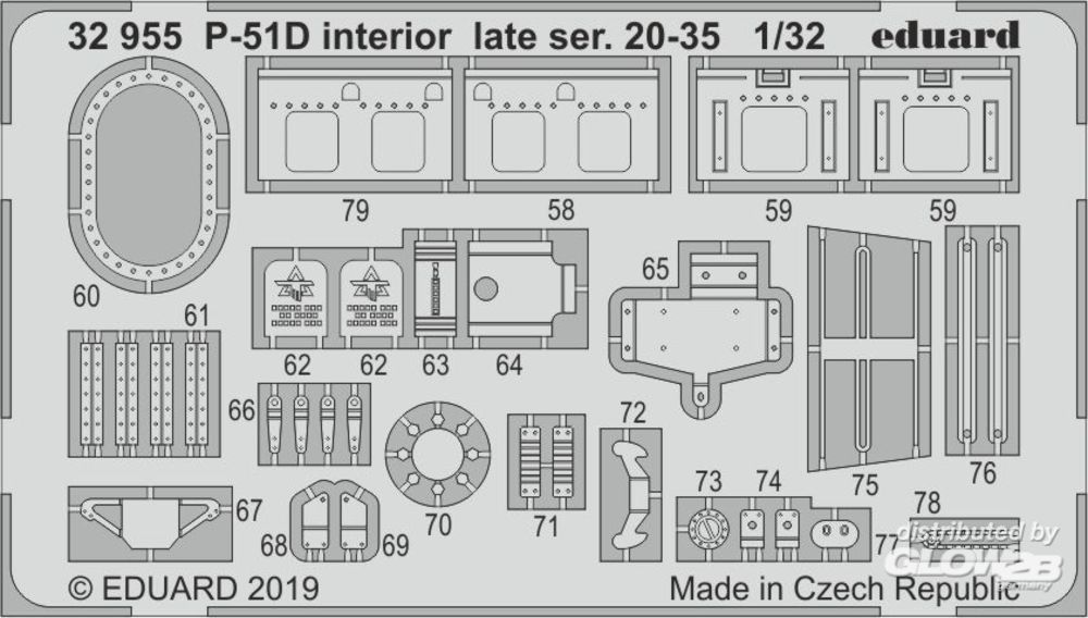 Eduard Accessories: P-51D interior late ser. 20-35 f. Tamiya in 1:32 [3932955]
