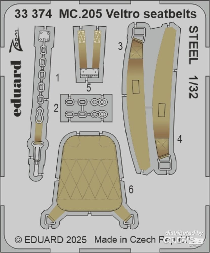 Eduard Accessories: MC.205 Veltro seatbelts STEEL ITALERI in 1:32 [3933374]
