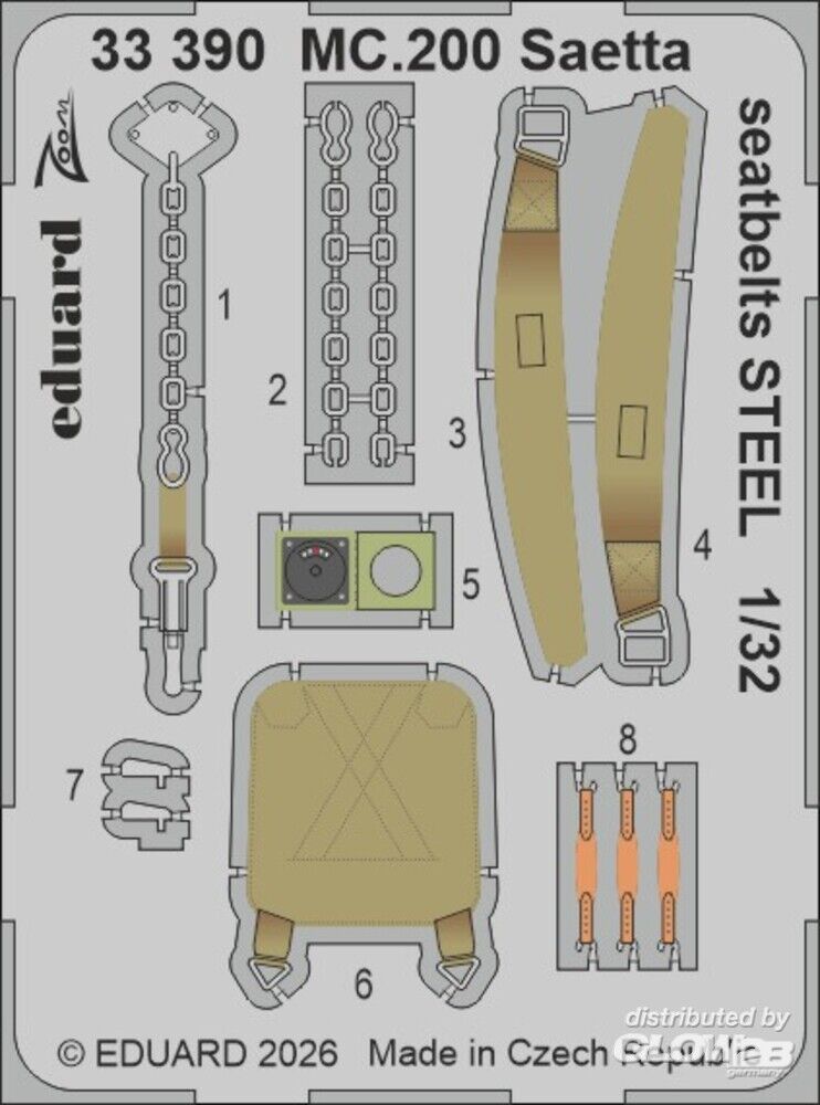 Eduard Accessories: MC.200 Saetta seatbelts STEEL for Italeri in 1:32 [3933390]