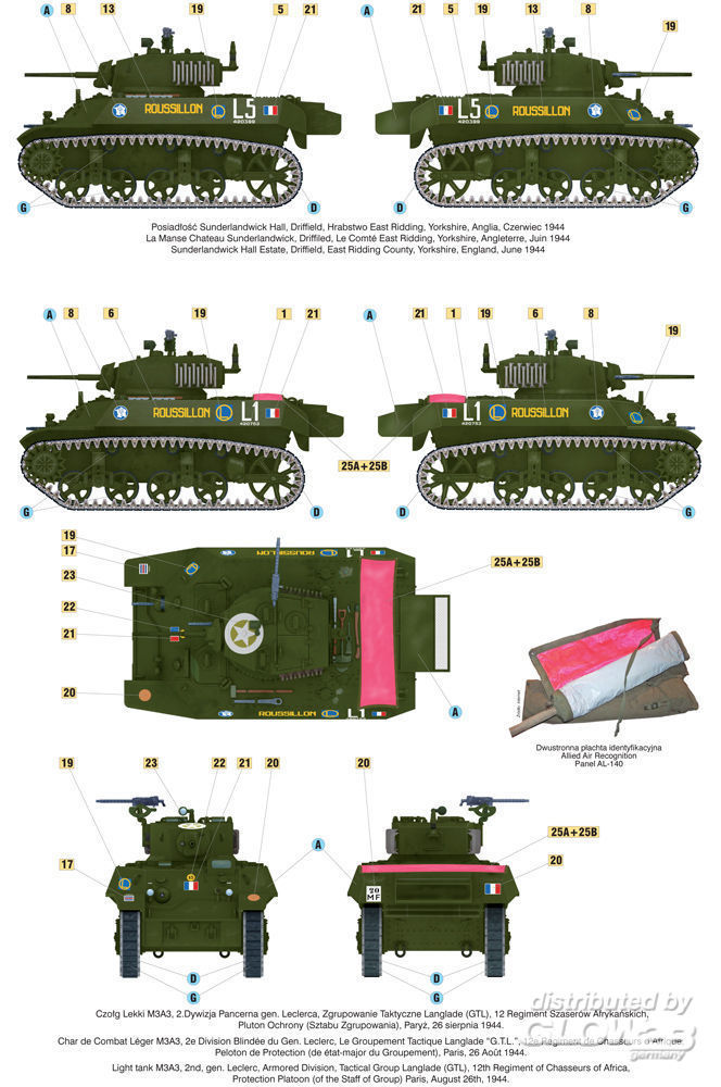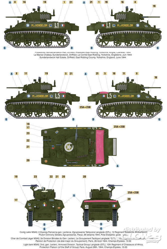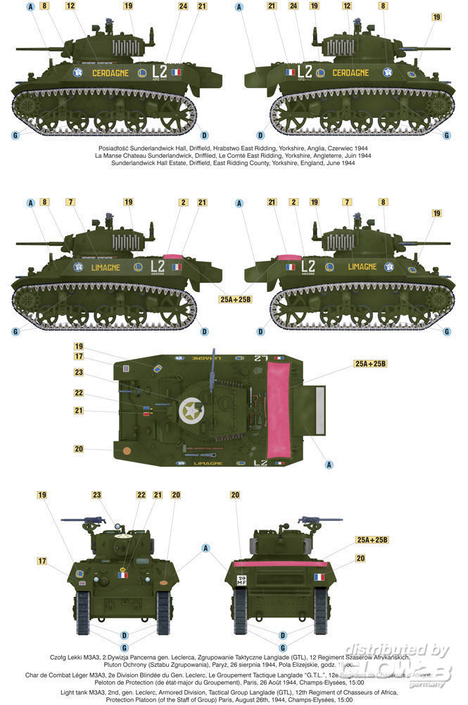 „Liberation of Paris”, Light Tank M3A3, 2nd Arm. Div. gen. Leclerc, GTL, 12th Regiment of Chasseurs of Africa, (new tooling of some parts )
