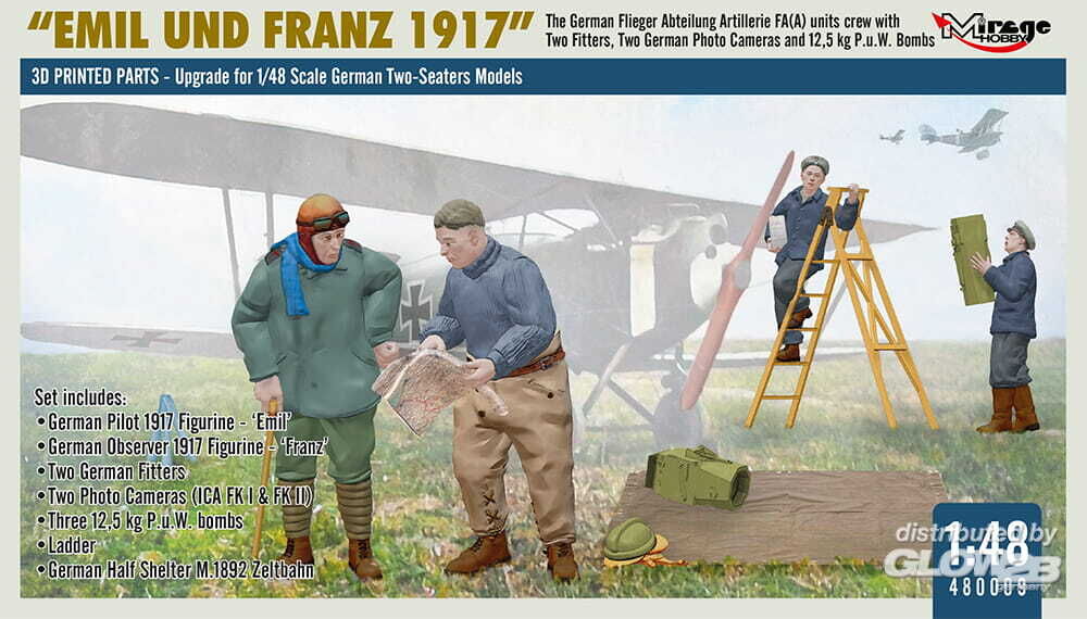 Mirage Hobby: WWI German FA(A) Units Crew 'Emil und Franz 1917' w/Equipment in 1:48 [4080009]