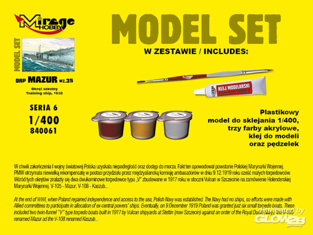 Mirage Hobby: ORP"MAZUR"1935(Training Ship)(Model Set) in 1:400 [4084061]