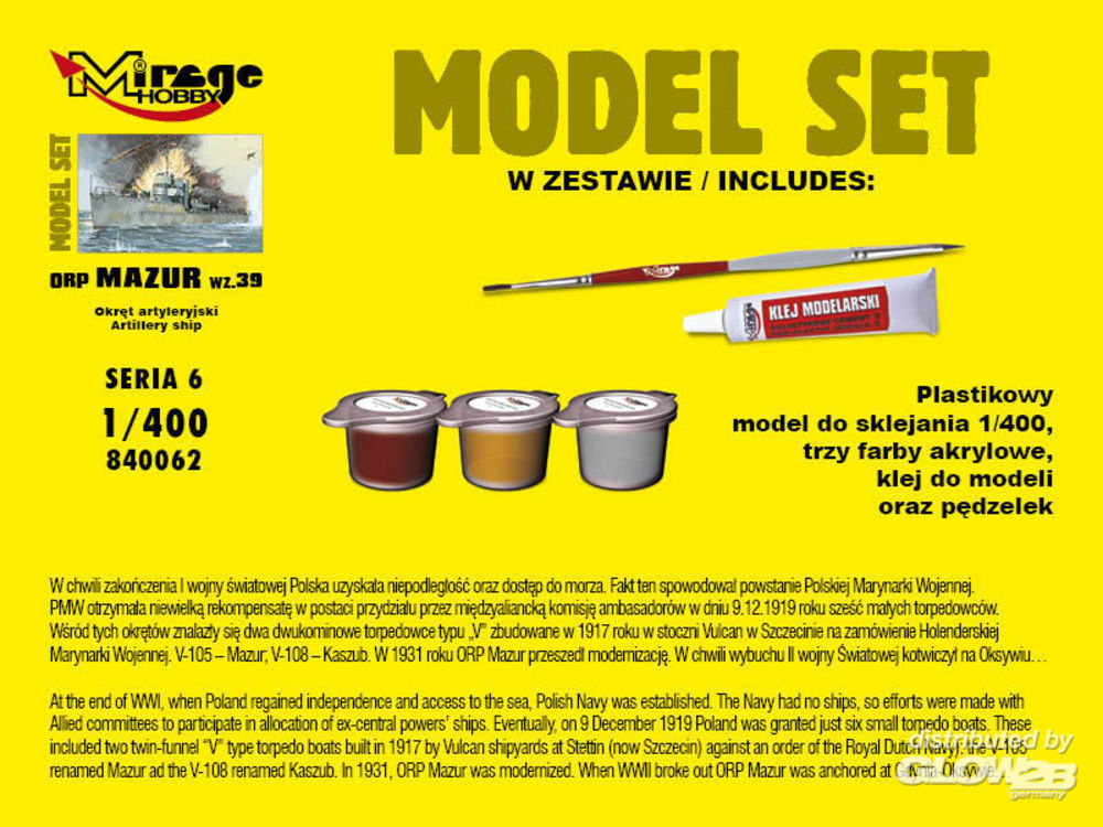 Mirage Hobby: ORP"Mazur"-wz.39(the GunneryShip)ModelSe in 1:400 [4084062]
