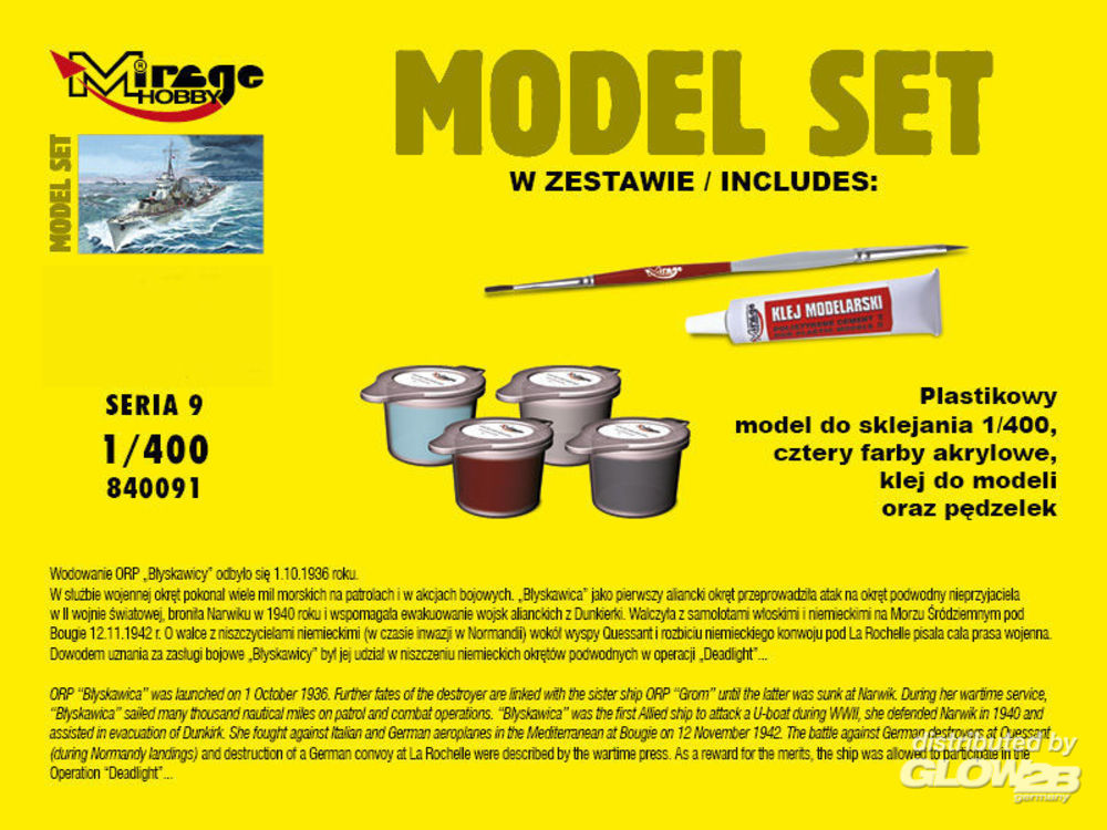 Mirage Hobby: ORP"Blyskawica"-wz.44(Polish Destroyer WWII)(Model Set) in 1:400 [4084091]