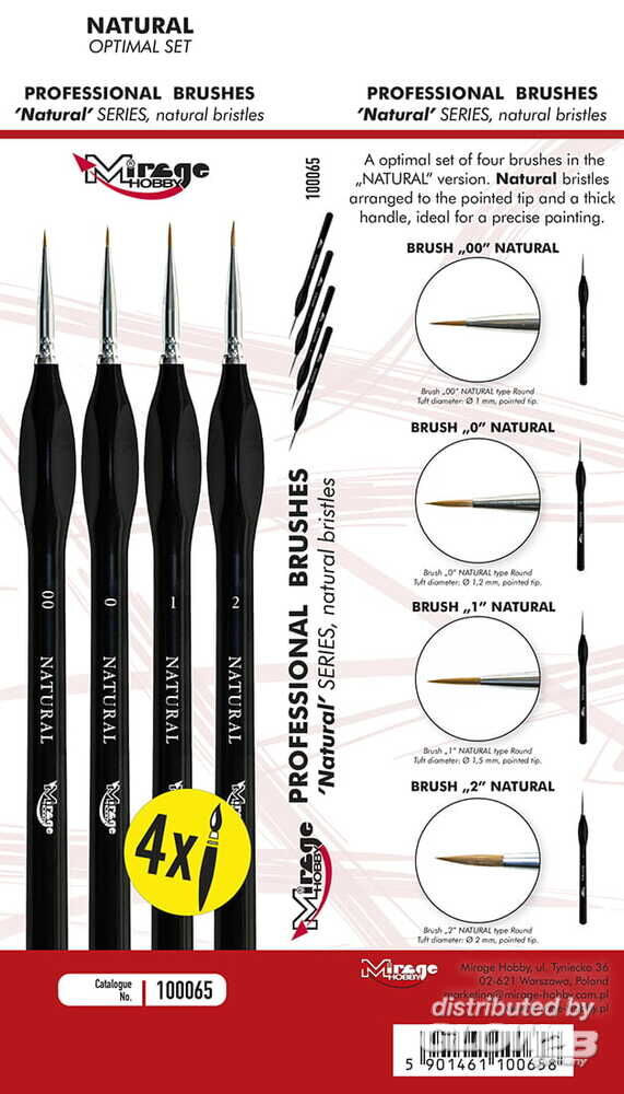 Mirage Hobby: MIRAGE BRUSH OPTIMAL SET of NATURAL [4 x Natural Brush: 00, 0, 1, 2] [4100065]