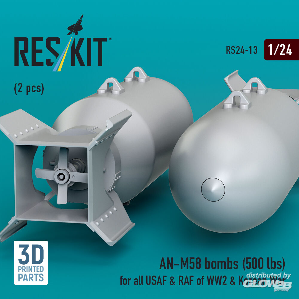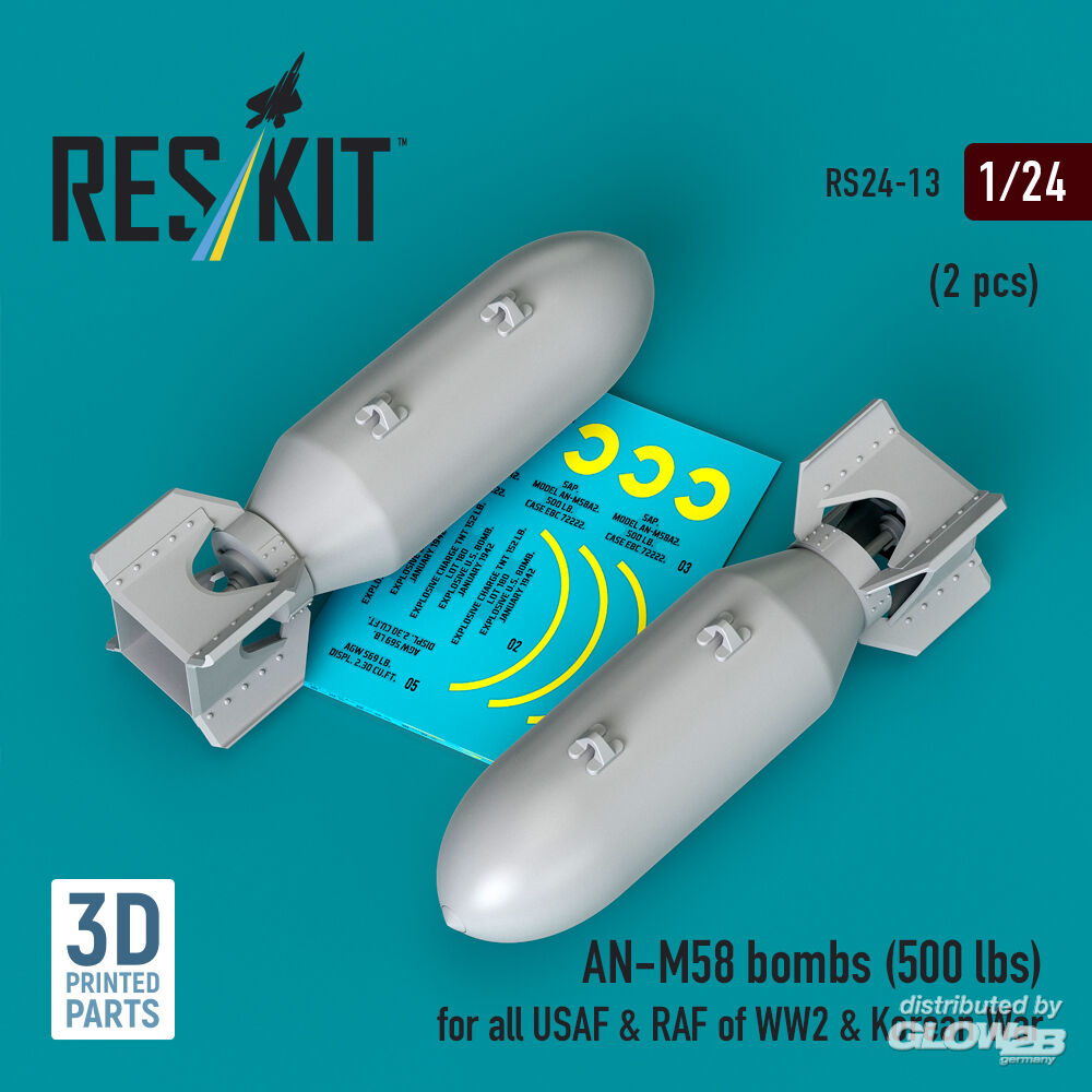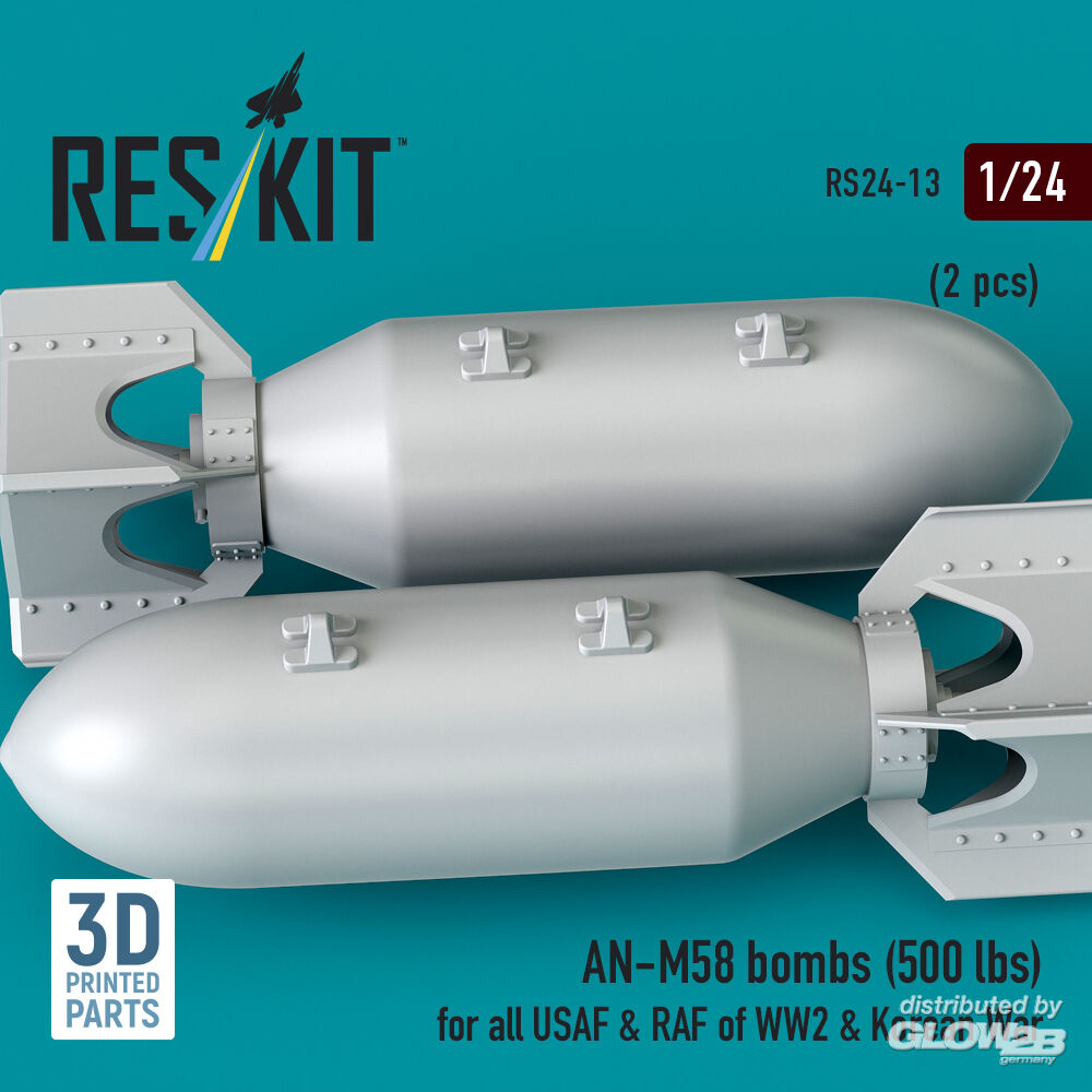 ResKit Models: AN-M58 bombs (500 lbs) for all USAF & RAF of WW2 & Korean War (2 pcs) (3D Printed) in 1:24 [4591100132]