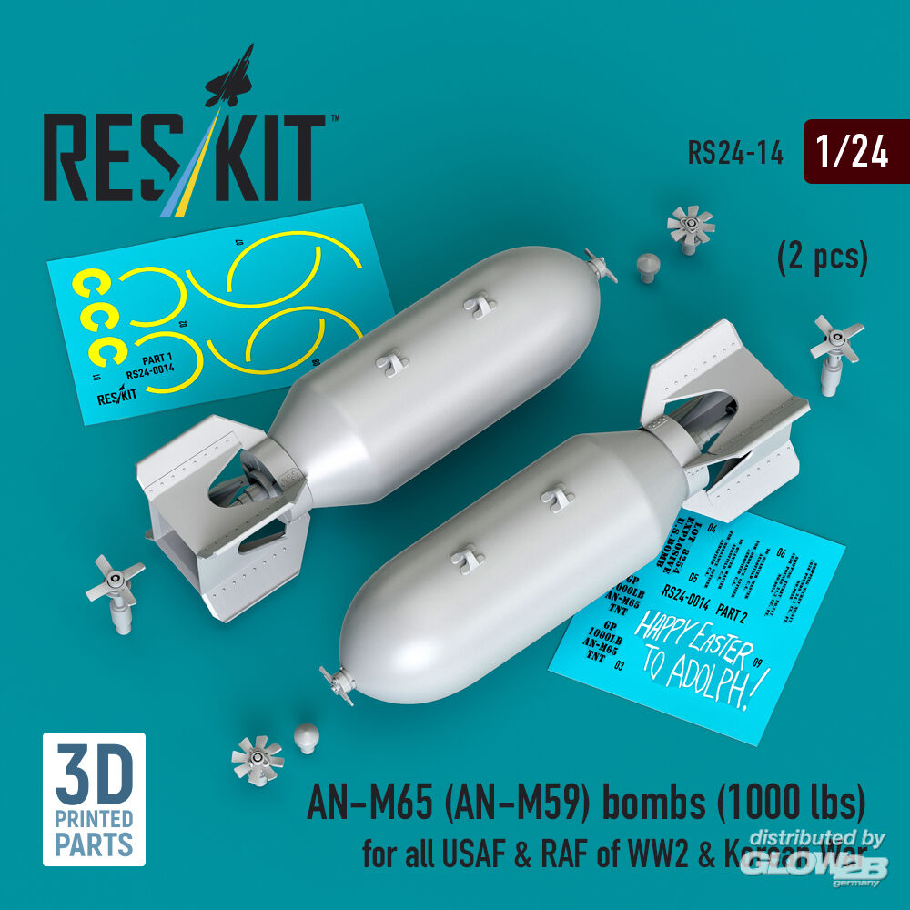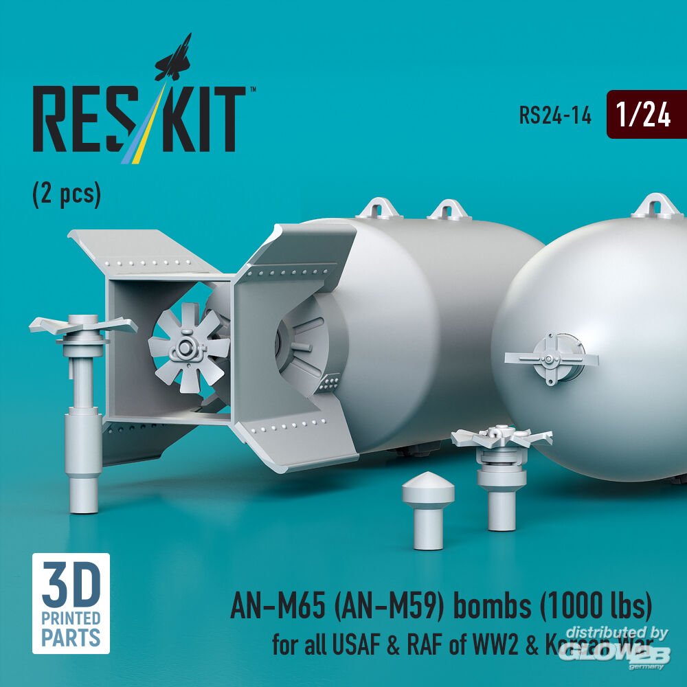 ResKit Models: AN-M65 (AN-M59) bombs (1000 lbs) for all USAF & RAF of WW2 & Korean War (2 pcs) (3D Printed) in 1:24 [4591100149]