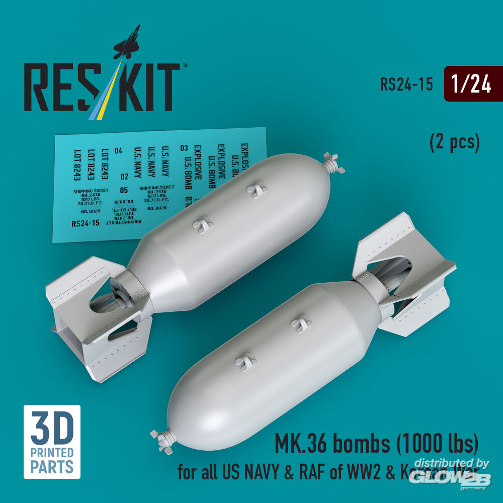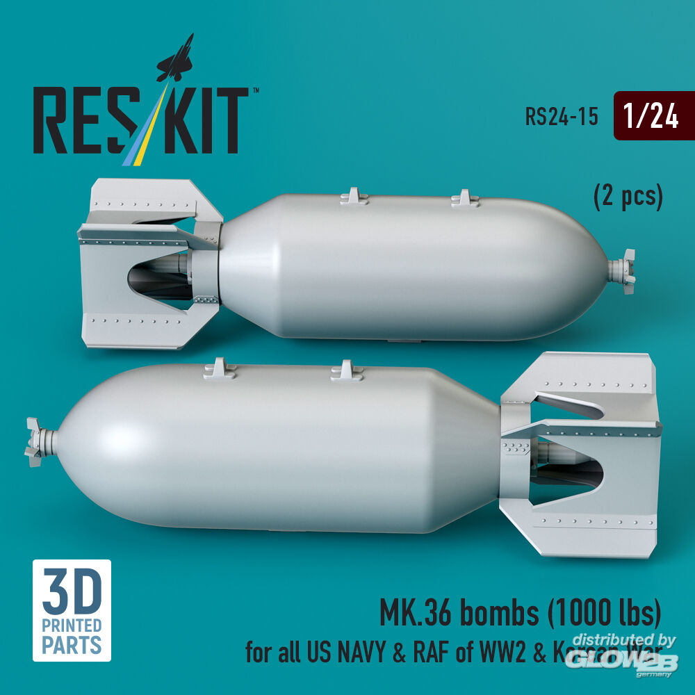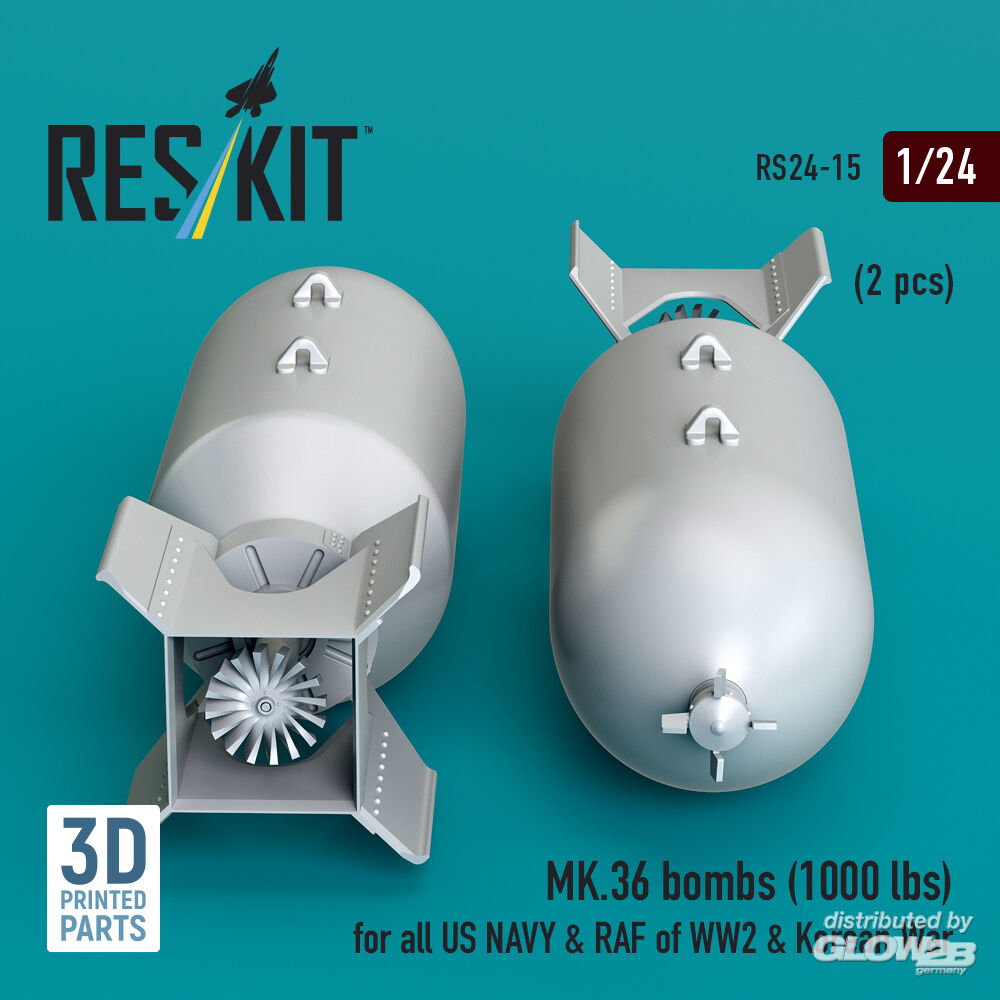 ResKit Models: MK.36 bombs (1000 lbs) for all US NAVY & RAF of WW2 & Korean War (2 pcs) (3D Printed) in 1:24 [4591100156]