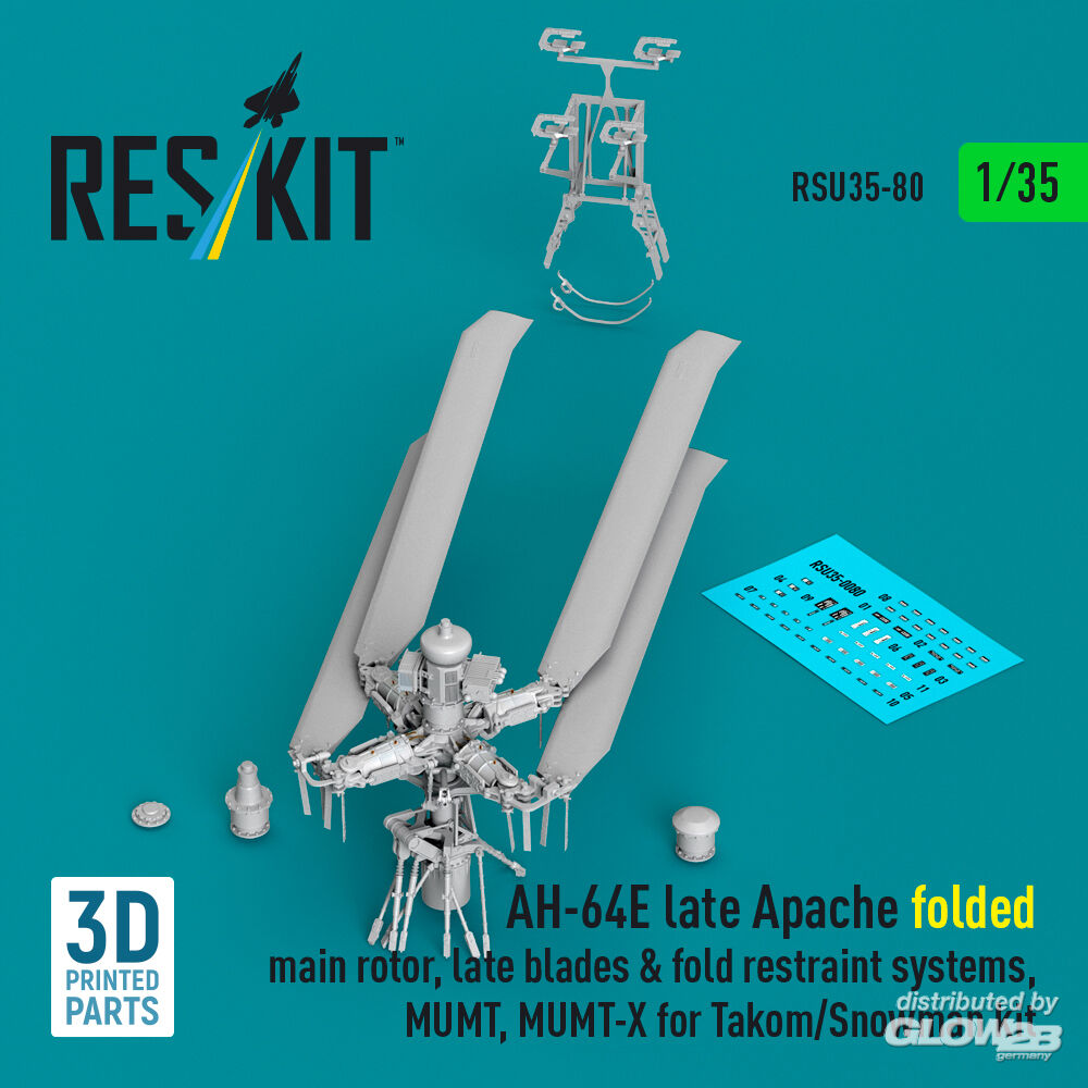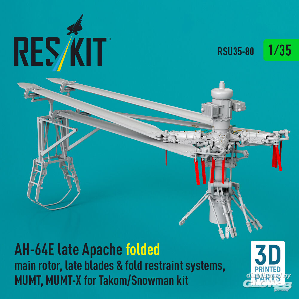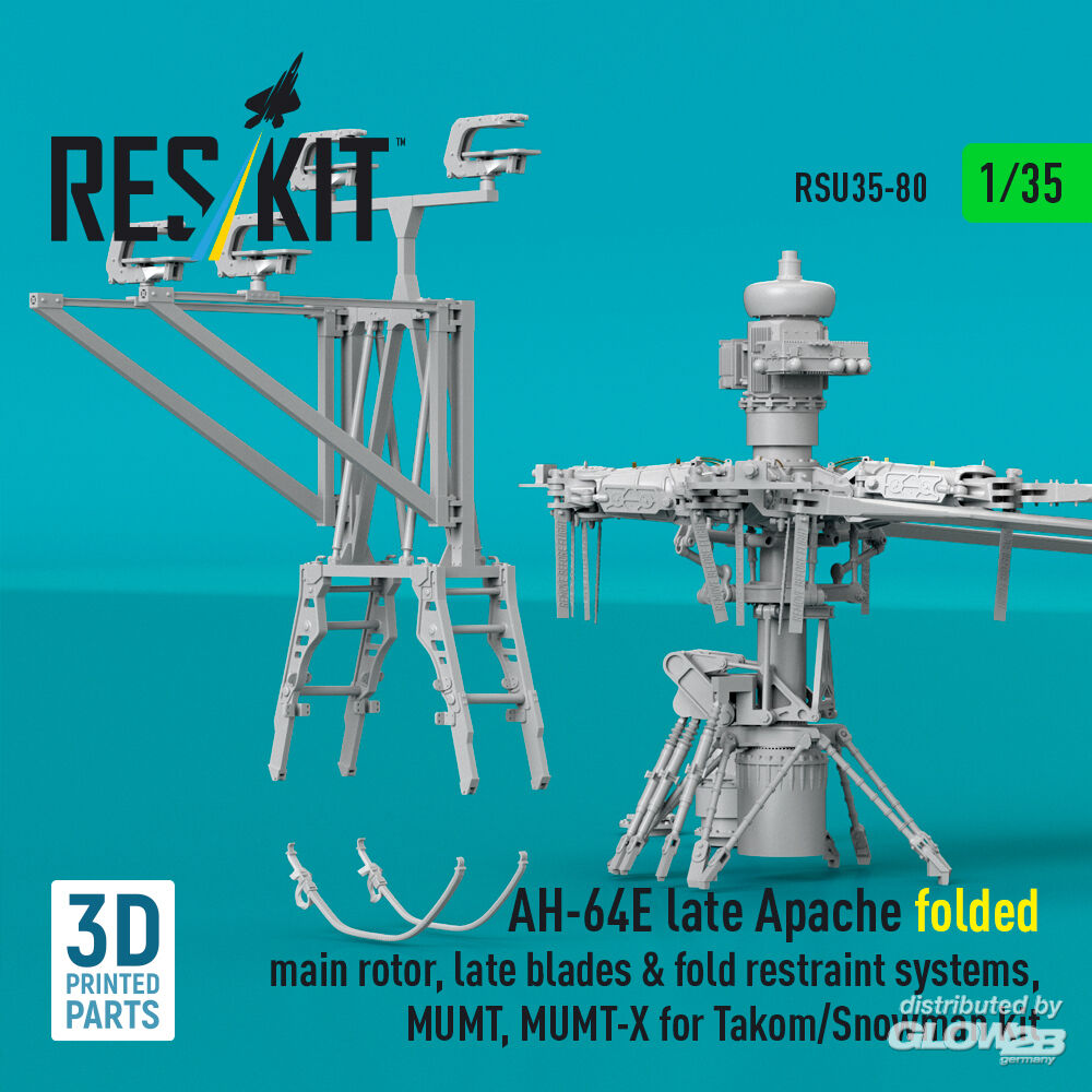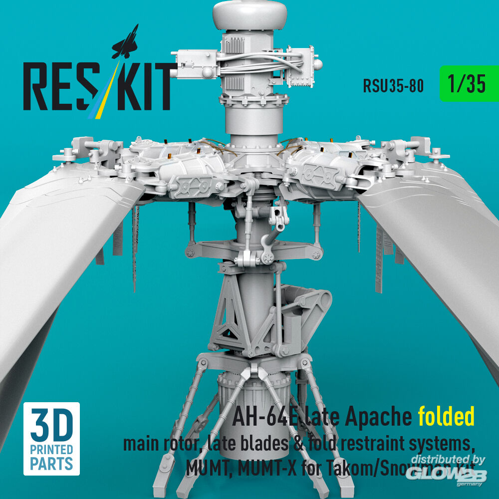 ResKit Models: AH-64E late Apache folded main rotor, late blades & fold restraint systems, MUMT, MUMT-X for Takom/Snowman kit (3D Printed) in 1:35 [4592200800]