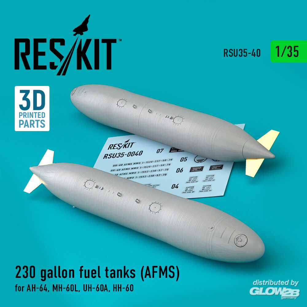 ResKit Models: 230 gallon fuel tanks (AFMS) for AH-64, MH-60L, UH-60A, HH-60 (2 pcs) (3D Printed) in 1:35 [4592300401]