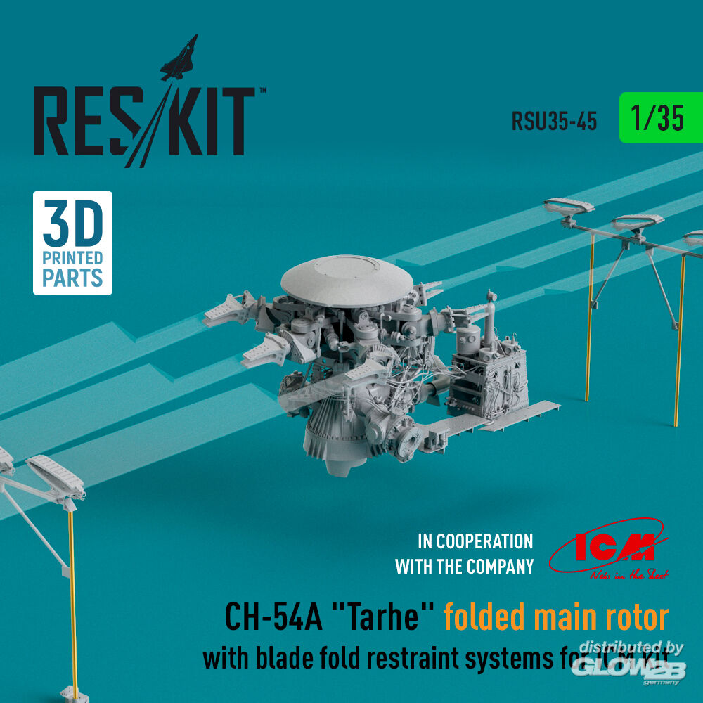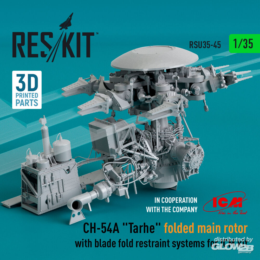 ResKit Models: CH-54A Tarhe folded main rotor with blade fold restraint systems for ICM kit (3D Printed) in 1:35 [4592300456]