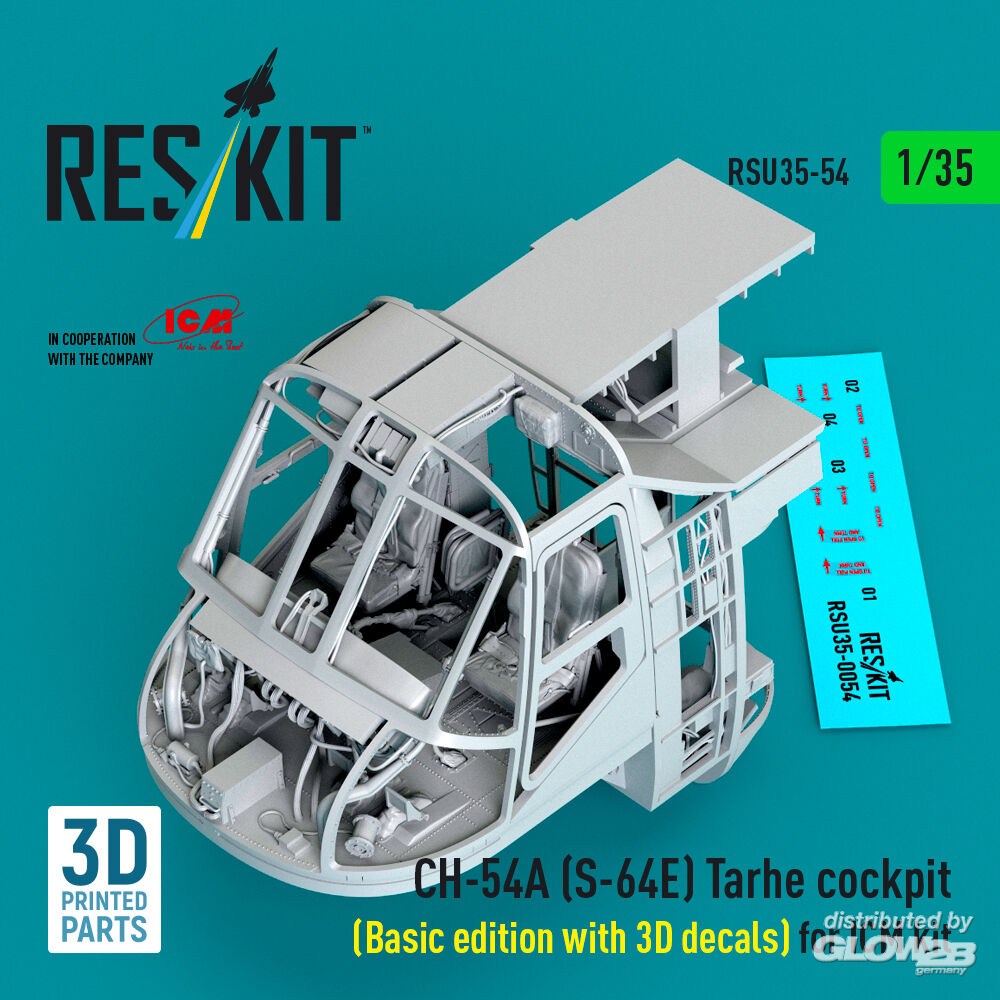 ResKit Models: CH-54A (S-64E) Tarhe cockpit (Basic edition with 3D decals) for ICM kit (3D Printed) in 1:35 [4592300548]