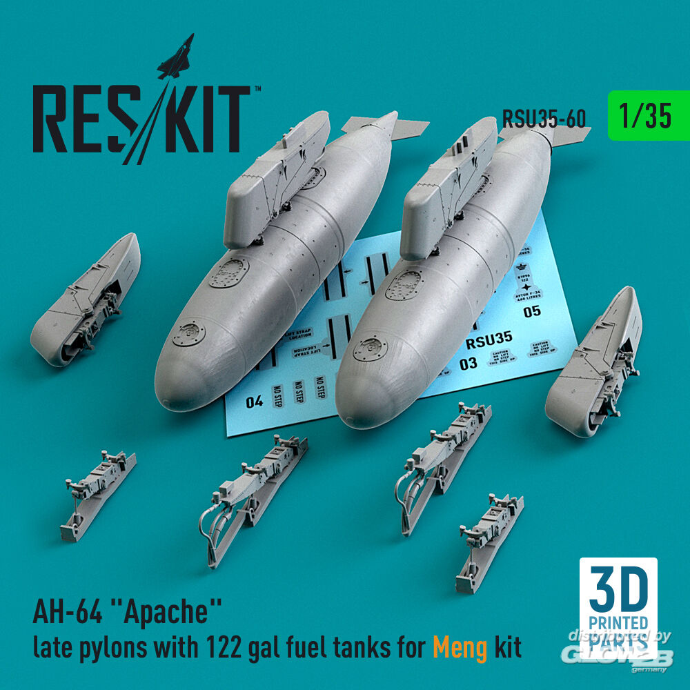 ResKit Models: AH-64 Apache late pylons with 122 gal fuel tanks for Meng kit (3D Printed) in 1:35 [4592300609]