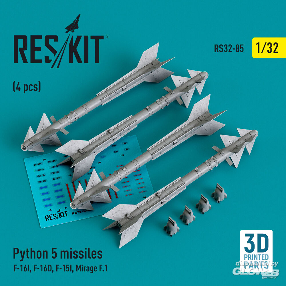 ResKit Models: Python 5 missiles (4 pcs) (F-16I, F-16D, F-15I, Mirage F.1) (3D Printed) in 1:32 [4593100857]