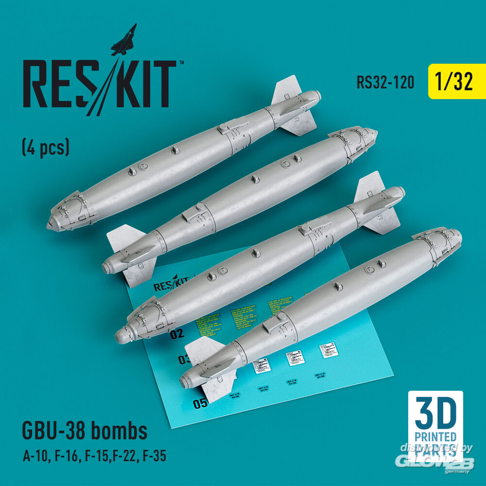 ResKit Models: GBU-38 bombs (4 pcs) (A-10, F-16, F-15,F-22, F-35) (3D Printed) in 1:32 [4593101205]
