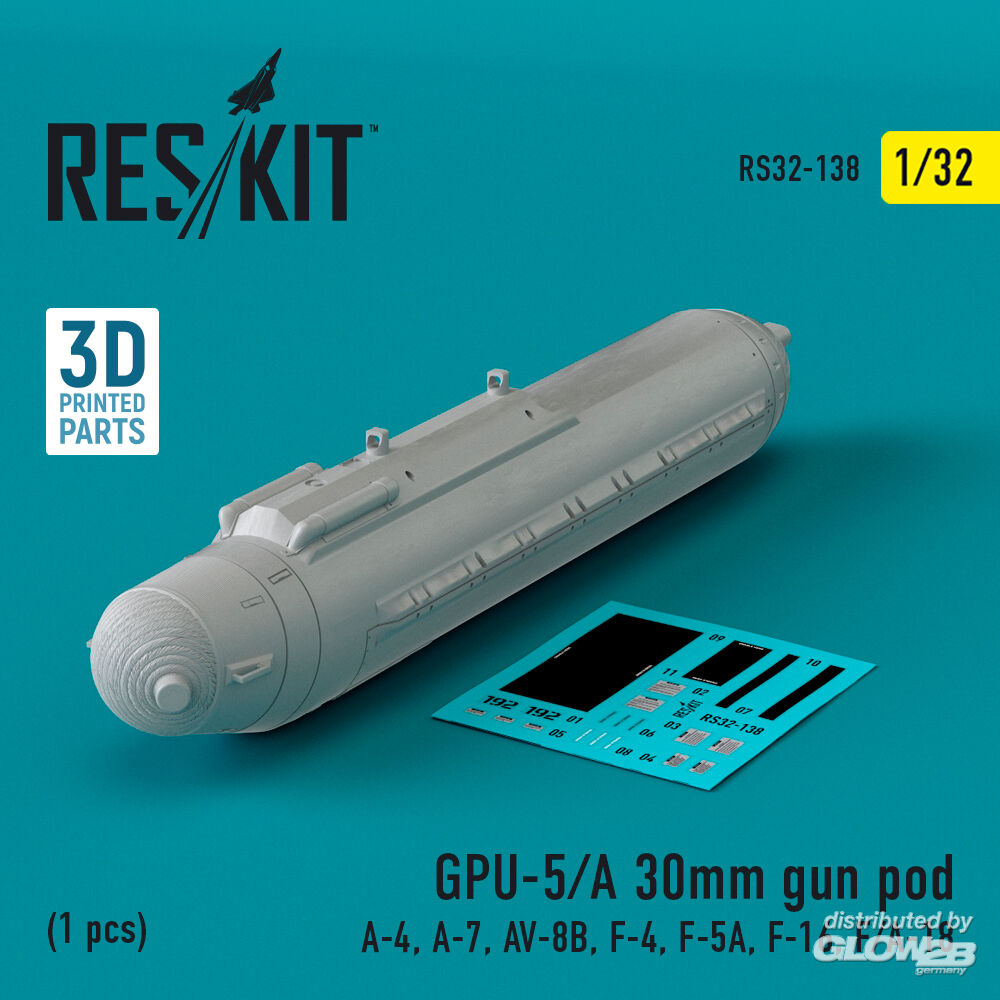 ResKit Models: GPU-5/A 30mm gun pod (1 pcs) (A-4, A-7, AV-8B, F-4, F-5A, F-16, F/A-18) (3D Printed) in 1:32 [4593101380]