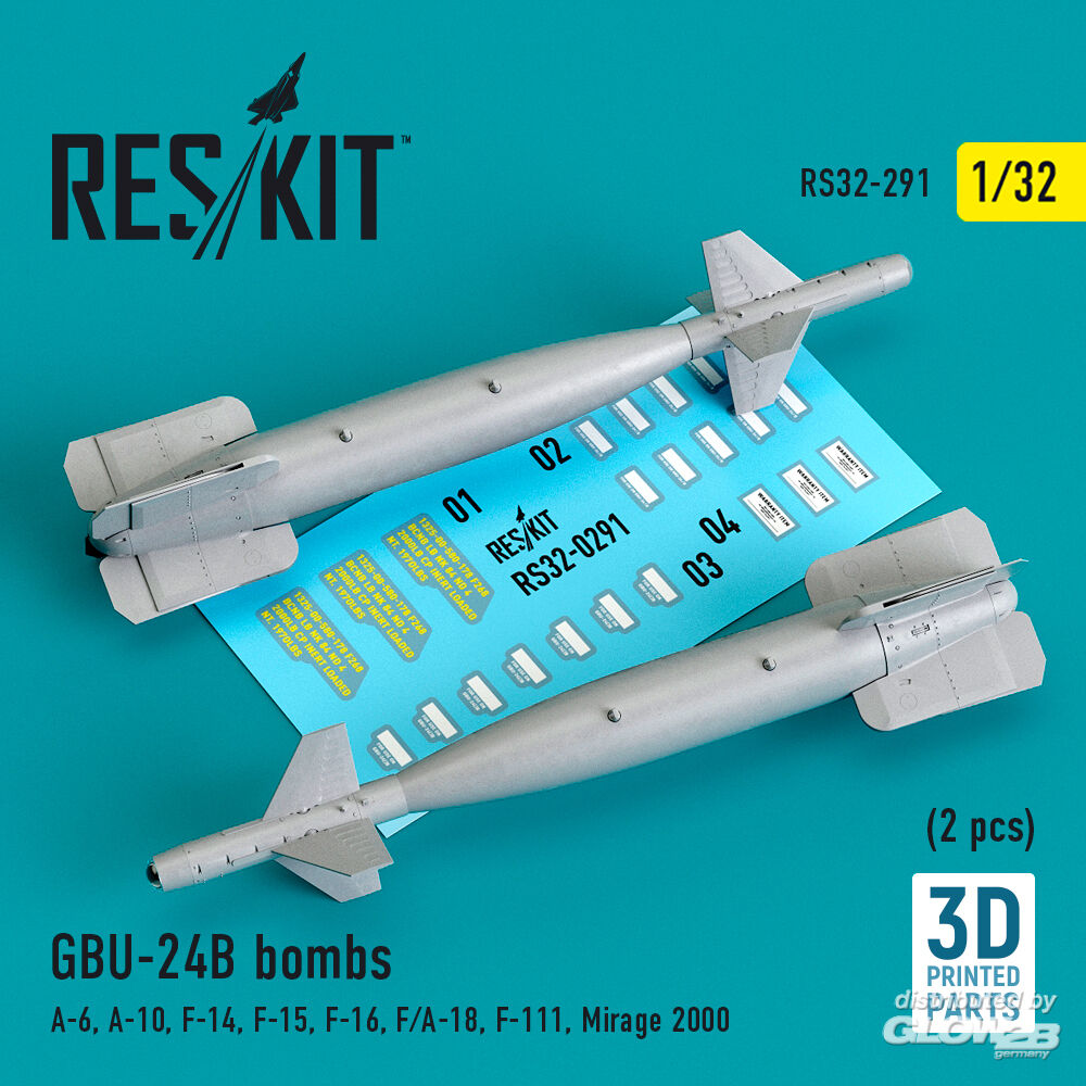 ResKit Models: GBU-24B bombs (2 pcs) (A-6, A-10, F-14, F-15, F-16, F/A-18, F-111, Mirage 2000) (3D Printed) in 1:32 [4593102912]