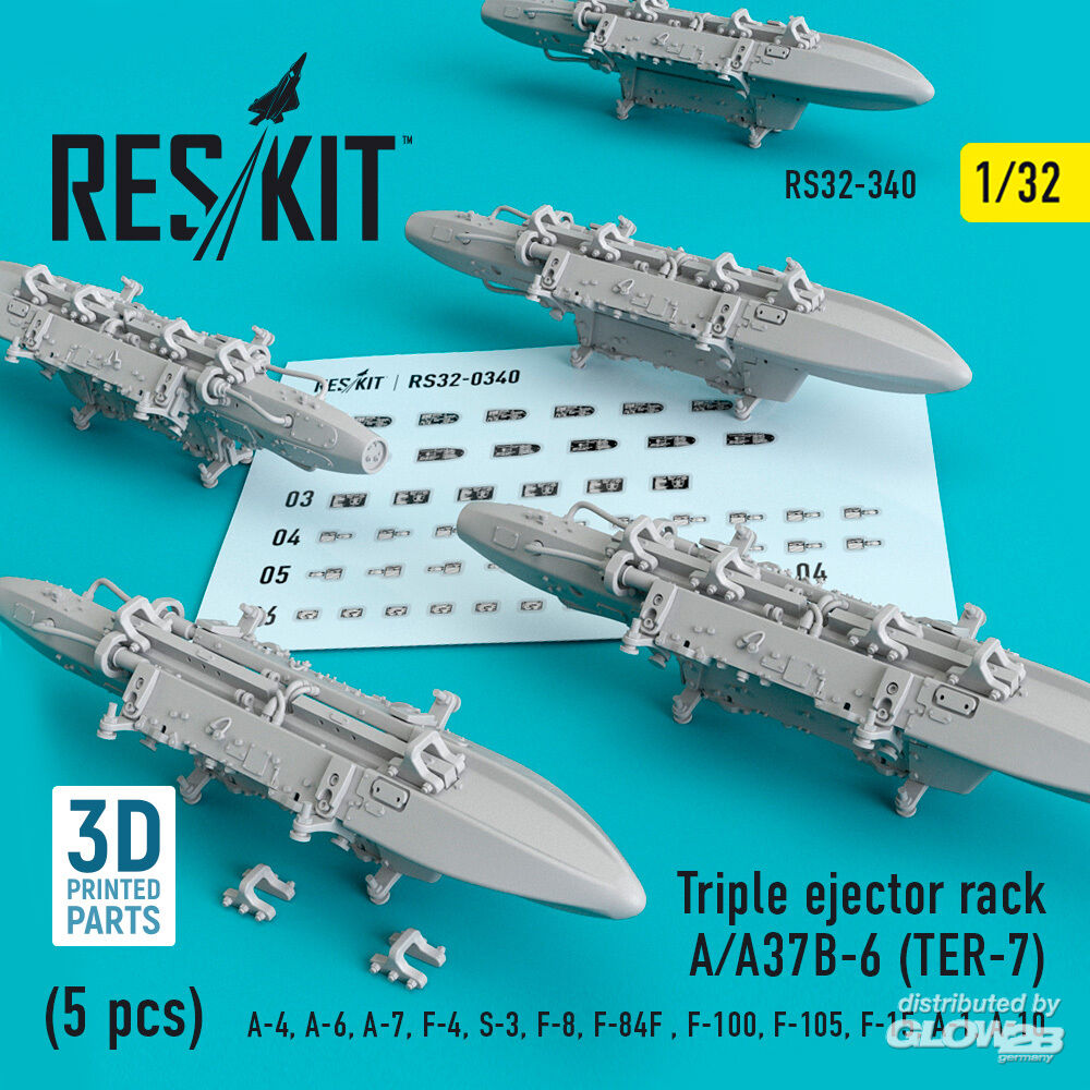 ResKit Models: Triple Ejector Rack A/A37B-6 (TER-7) (5 pcs) (A-4, A-6, A-7, F-4, S-3,F-8, F-84F, F-100, F-105, F-15, A-1, A-10) in 1:32 [4593103407]
