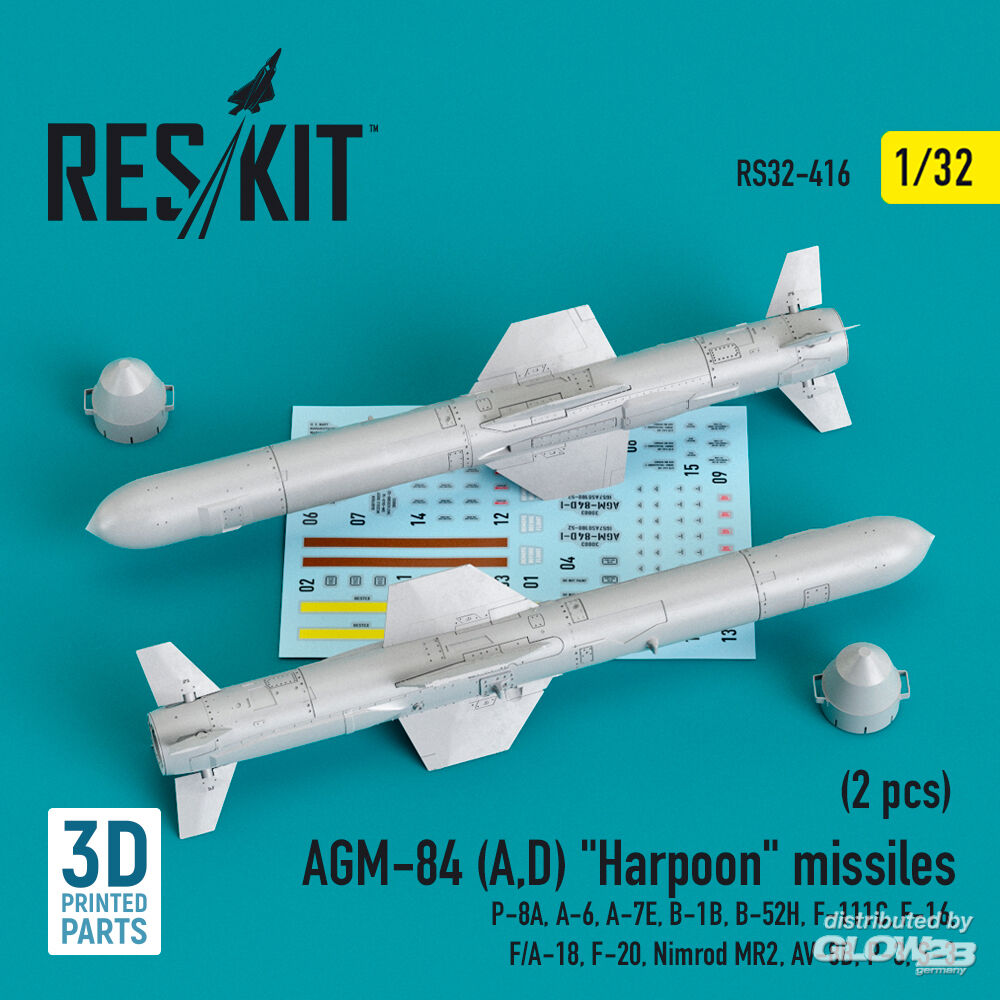 ResKit Models: AGM-84 (A,D) Harpoon missiles (2 pcs) (P-8A, A-6, A-7E, B-1B, B-52H, F-111C, F-16, F/A-18, F-20, Nimrod MR2, AV-8B, P-3, S-3) (3D Printed) in 1:32 [4593104169]