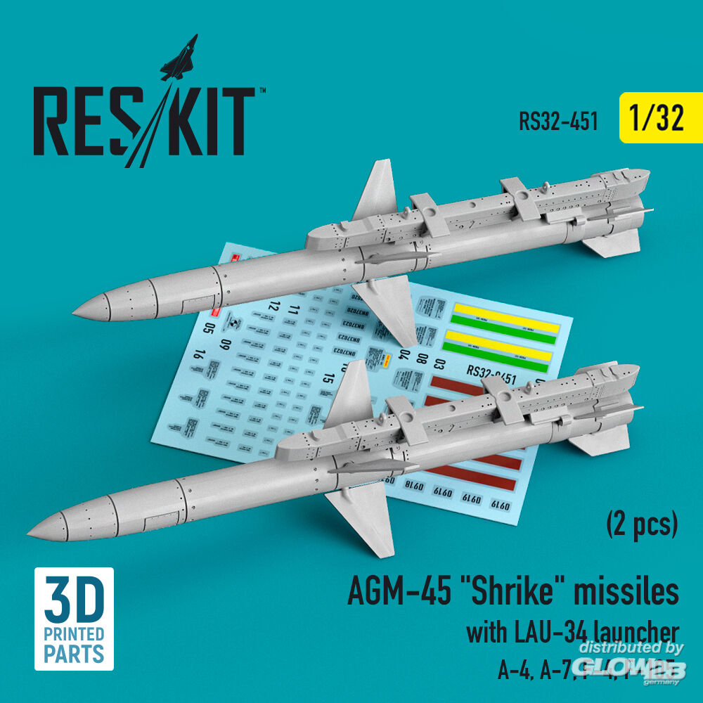 ResKit Models: AGM-45 Shrike missiles with LAU-34 launcher (2 pcs) (A-4, A-7, F-4, F-105) (3D Printed) in 1:32 [4593104510]